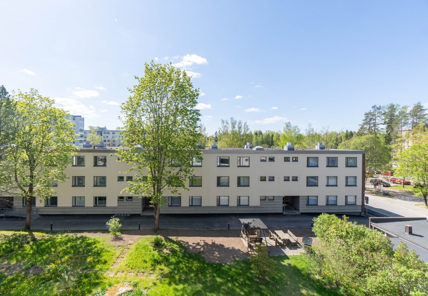 Suurimmat remontit on jo tehty, joten voit nauttia huoletonta asumista pitkälle tulevaisuuteen. Lisäksi asukkaiden käytössä on upeasti remontoitu saunaosasto ja uima-allas – täydellinen paikka rentoutumiseen ja virkistäytymiseen.