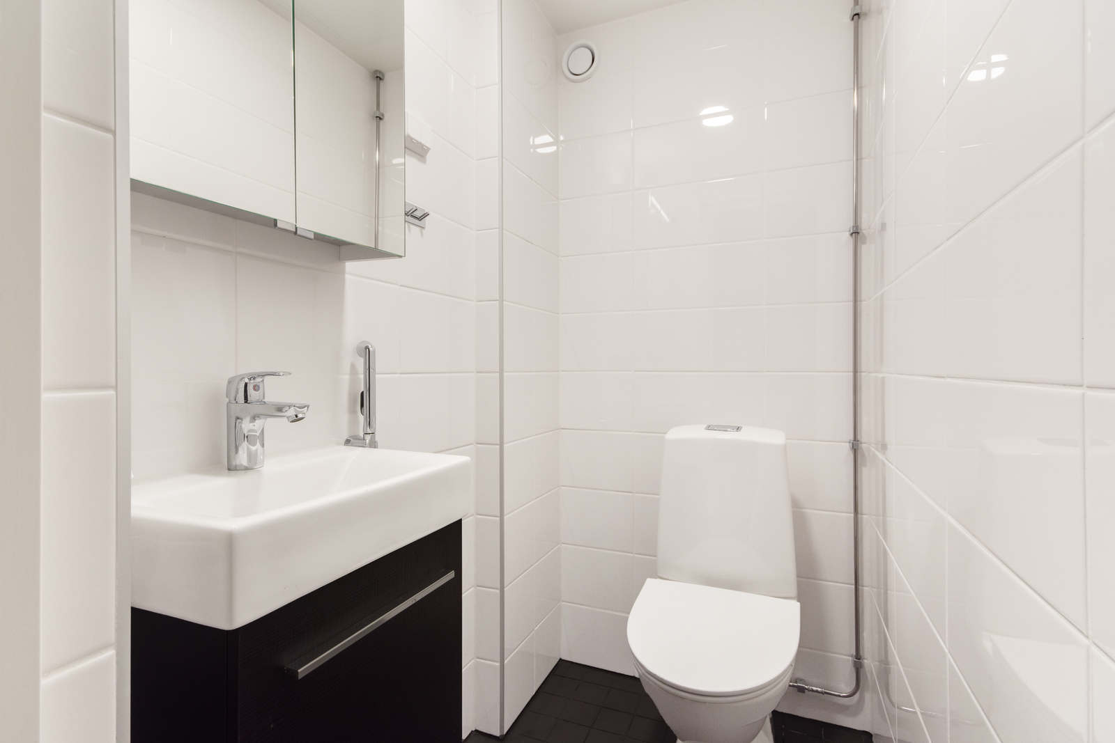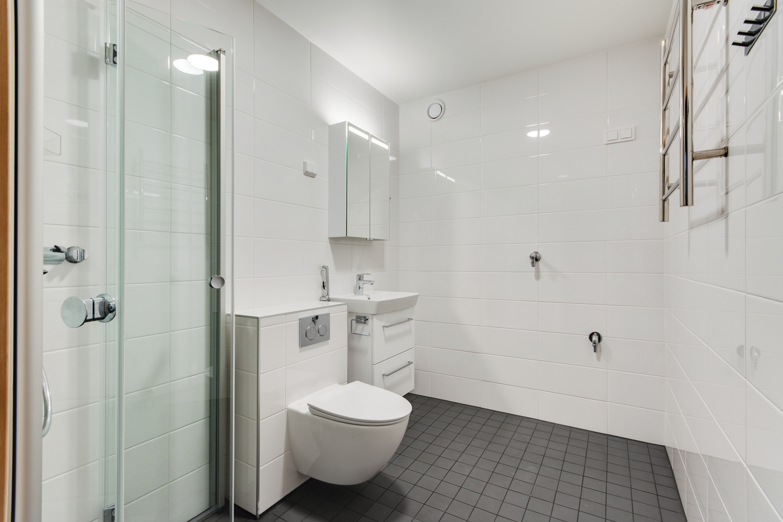 Juuri remontoidut kylpyhuone ja erillinen WC – modernit ja tyylikkäät tilat arjen helpottamiseen.