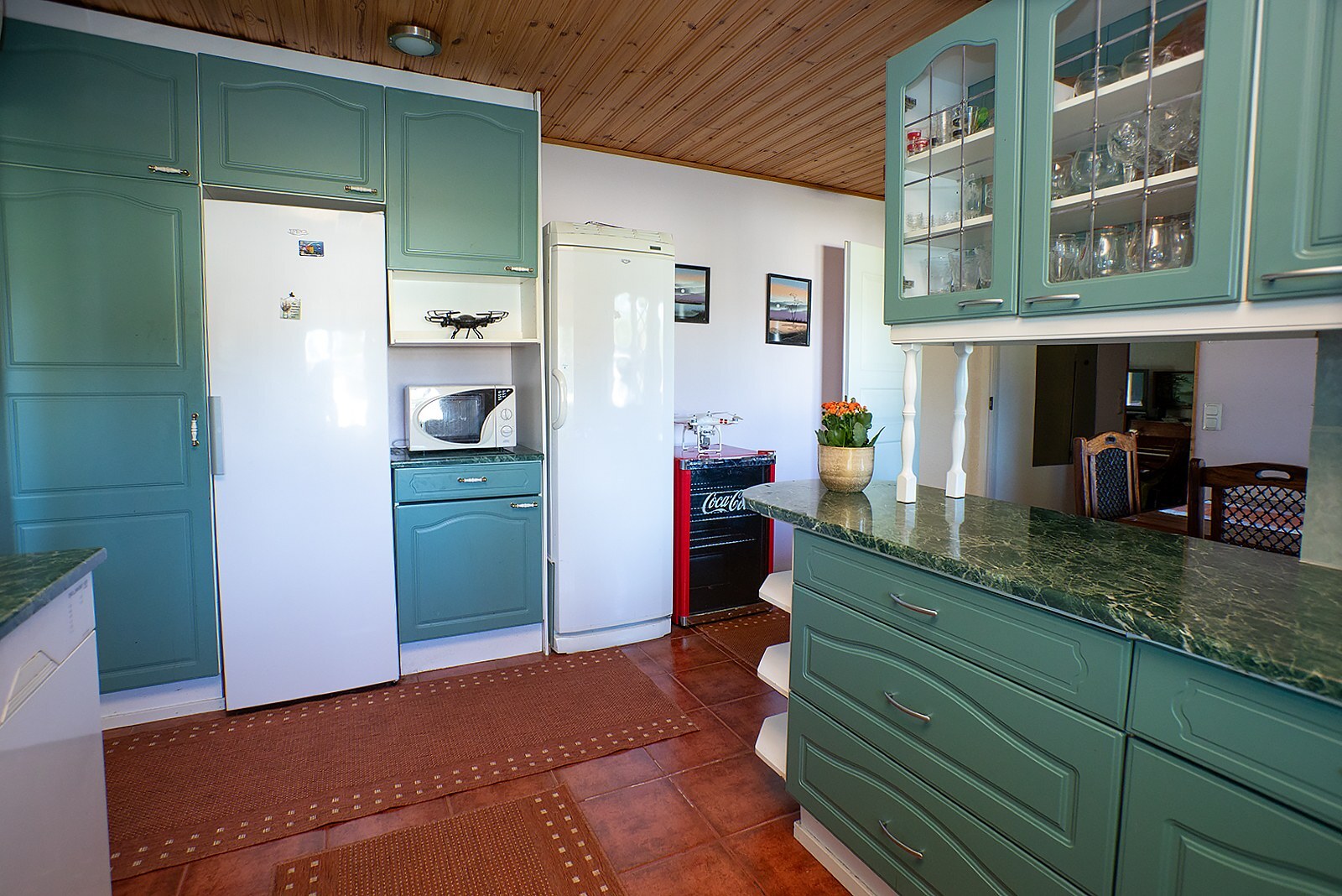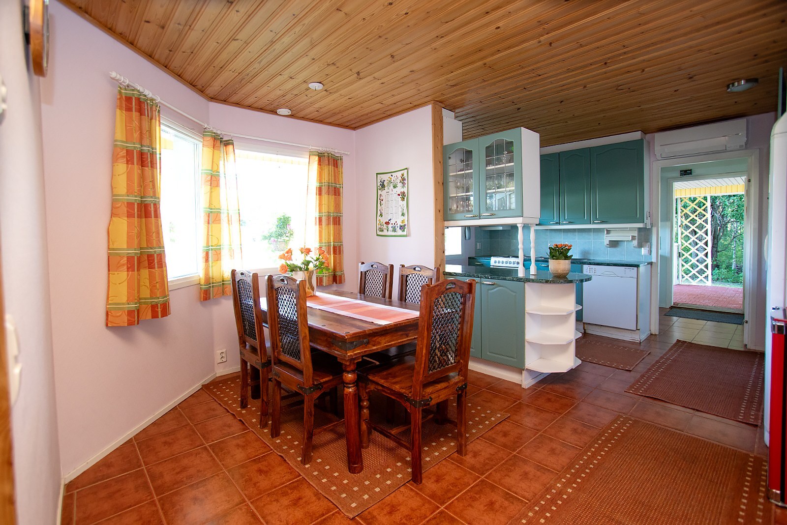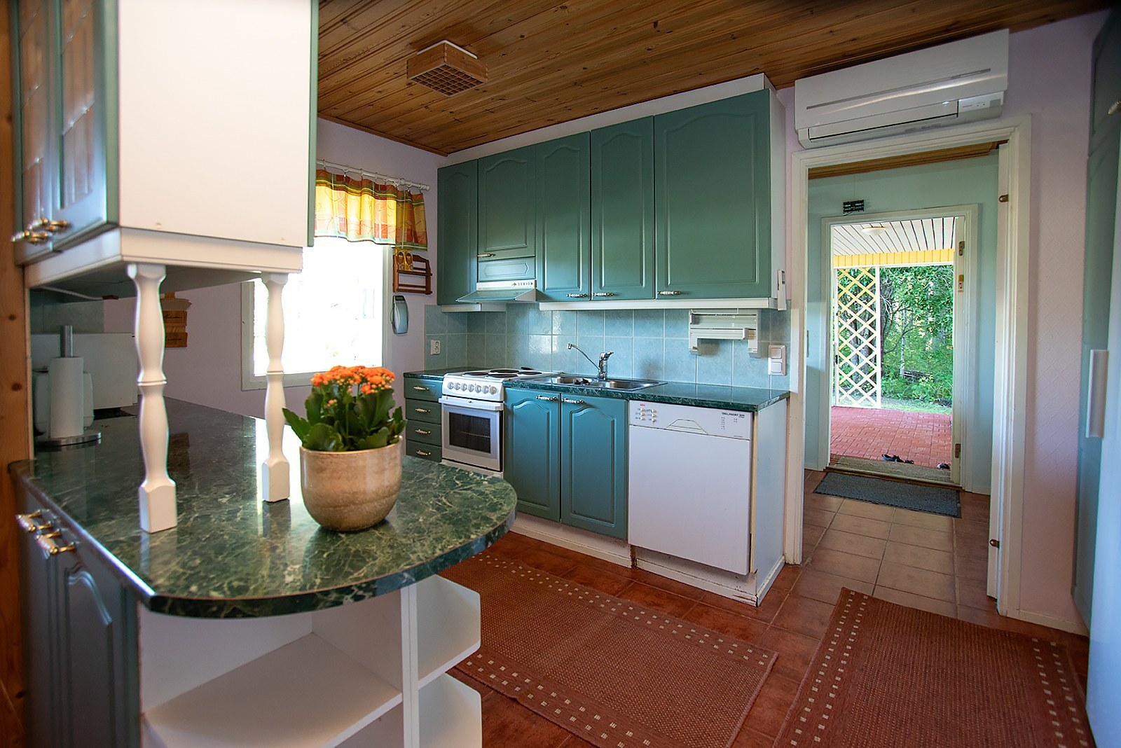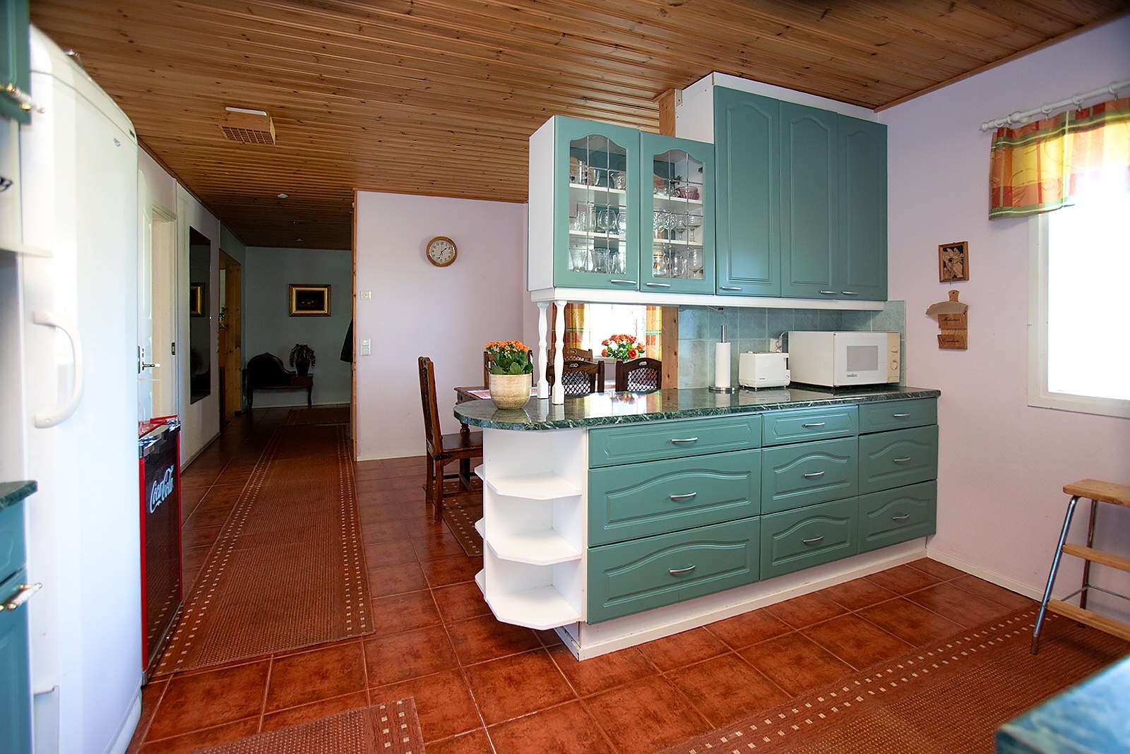 | Keittiön kuvaus | Liesi (sähköliesi), työtasot (laminaatti), seinät (maali), lattiat (laatta), astianpesukone, erillinen pakastin, liesi, liesituuletin, jääkaappi ja kiinteät valaisimet |