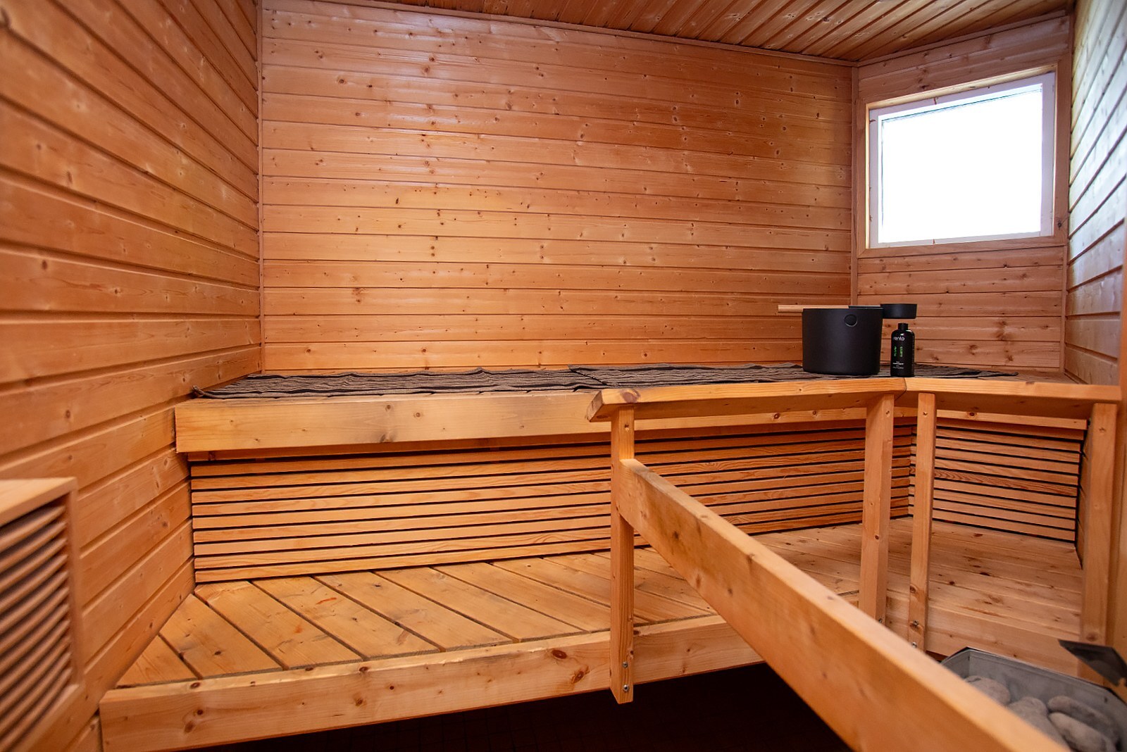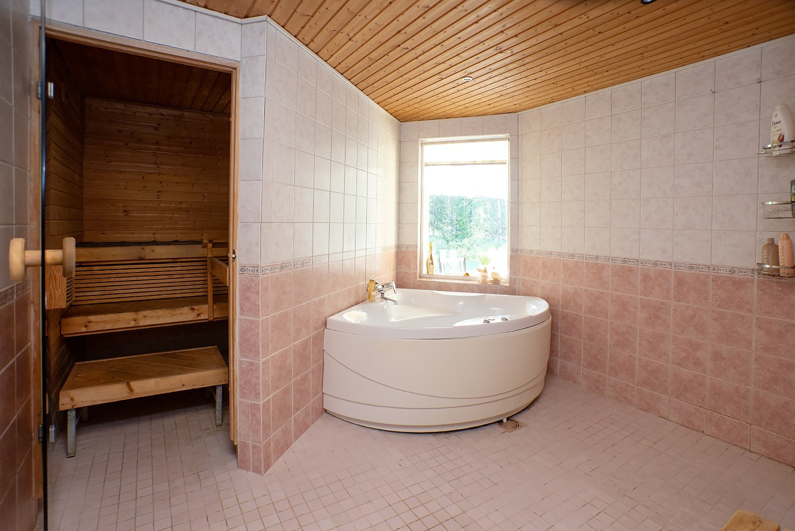 | Saunan kuvaus | Seinät (puu), lattiat (laatta), Sähkökiuas |