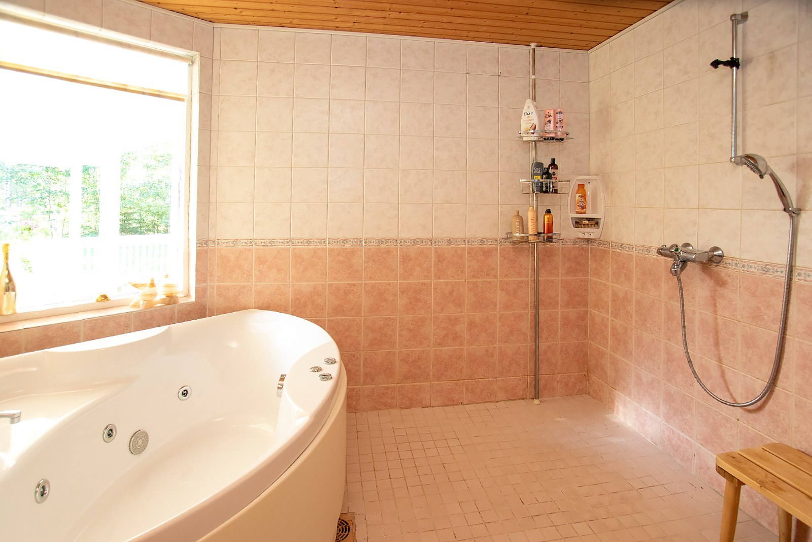 | Kylpyhuoneen kuvaus | Poreamme, lattialämmitys, suihku ja kiinteät valaisimet, seinät (kaakeli), lattiat (laatta) |