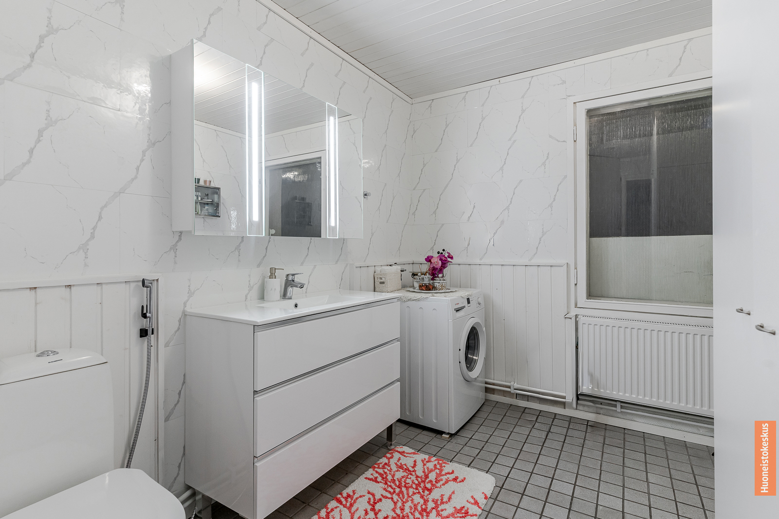 Lukumäärä: 1, WC-istuin ja pesukoneliitäntä, seinät (Puolipaneeli), lattiat (Laatta) |