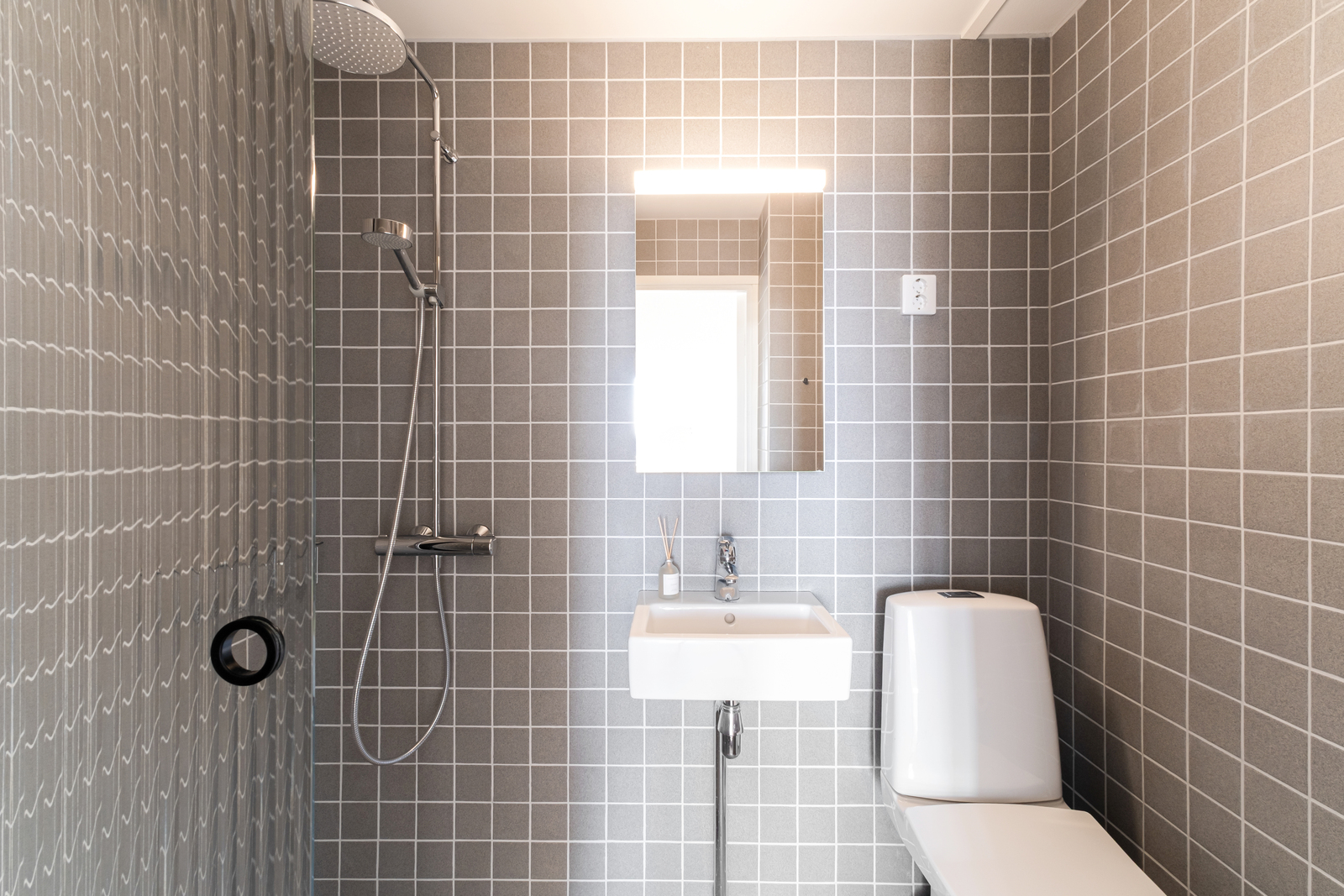 | Kylpyhuoneen kuvaus | Suihku, wc-istuin, peilikaappi, pesukoneliitäntä, suihkuseinä ja kiinteät valaisimet, seinät (kaakeli), lattiat (laatta) |