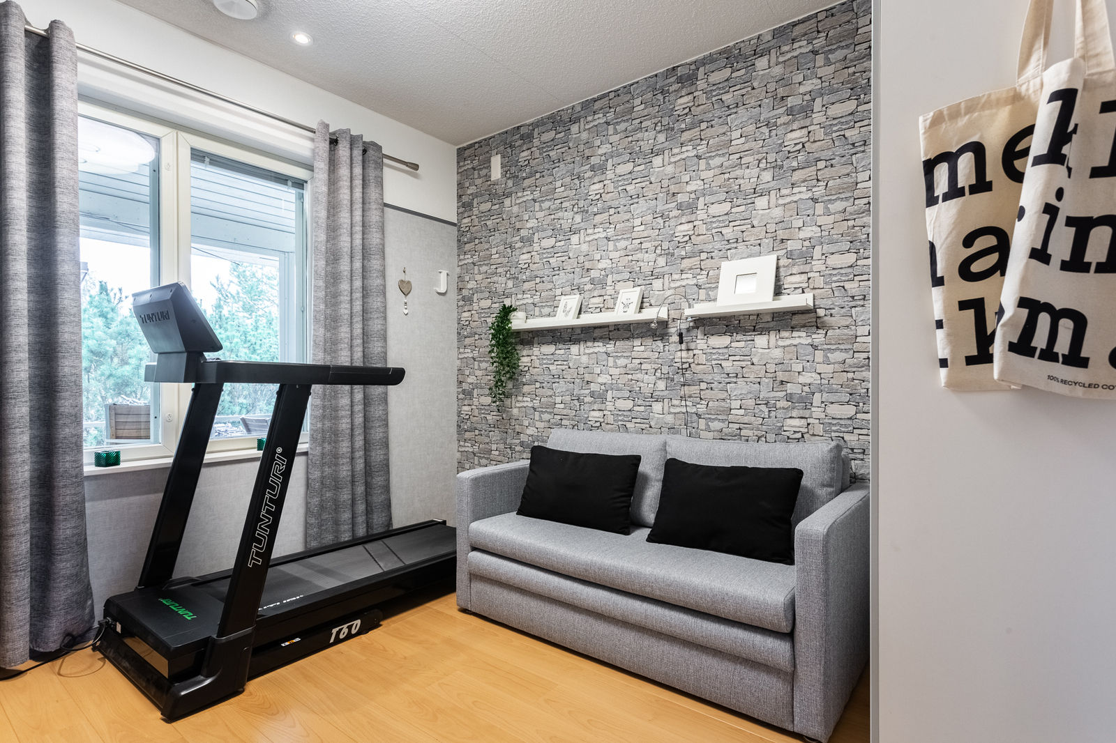 | Olohuoneen kuvaus | Seinät (lasikuitutapetti), lattiat (laminaatti) |