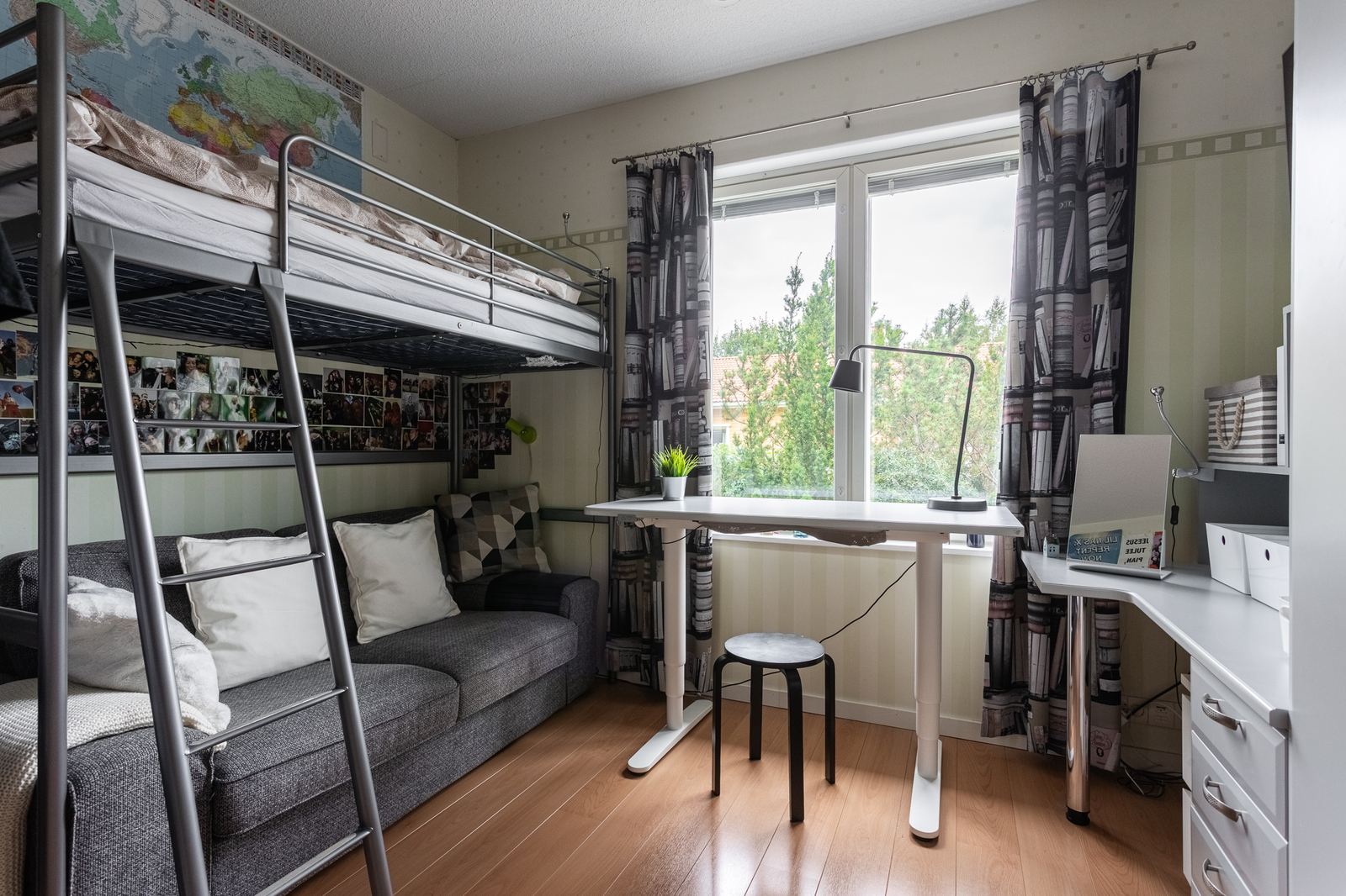 | Makuuhuoneen kuvaus | Lukumäärä: 4, seinät (tapetti), lattiat (laminaatti) |