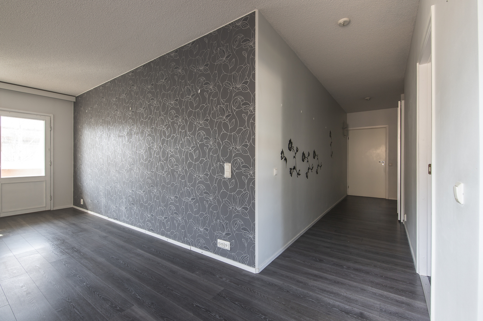 Olohuoneen kuvaus Seinät (maali ja tapetti), lattiat (laminaatti)
