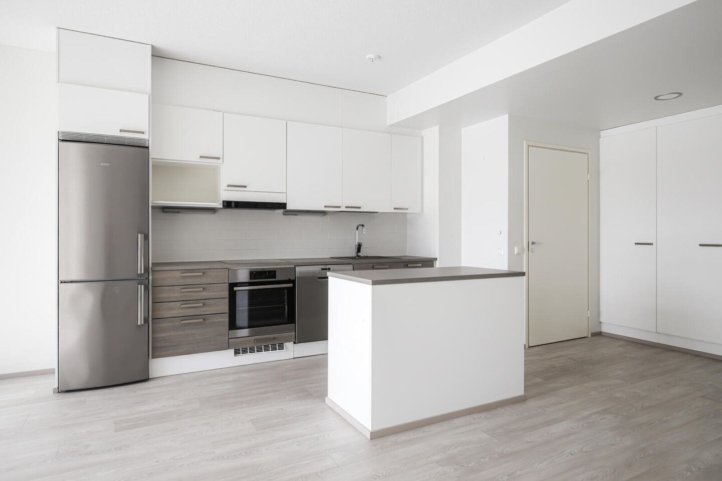 | Keittiön kuvaus | Liesi (Keraaminen liesi ja erillisuuni, integroitu), työtasot (laminaatti), seinät (maali), lattiat (laminaatti), erillisuuni, astianpesukone, jääkaappipakastin ja liesituuletin / hormi, kiinteät valaisimet |