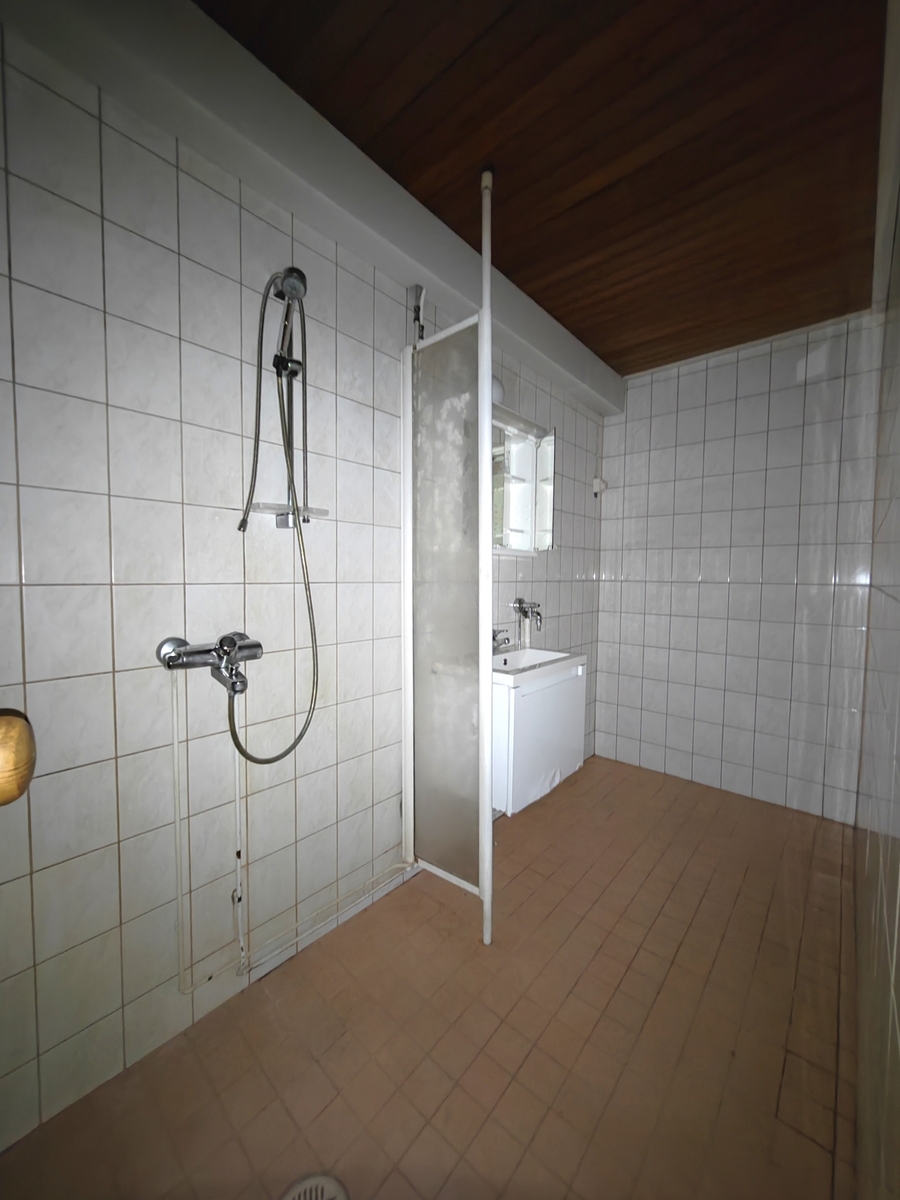 Suihkuseinä, peilikaappi ja suihku, seinät (kaakeli), lattiat (laatta) |