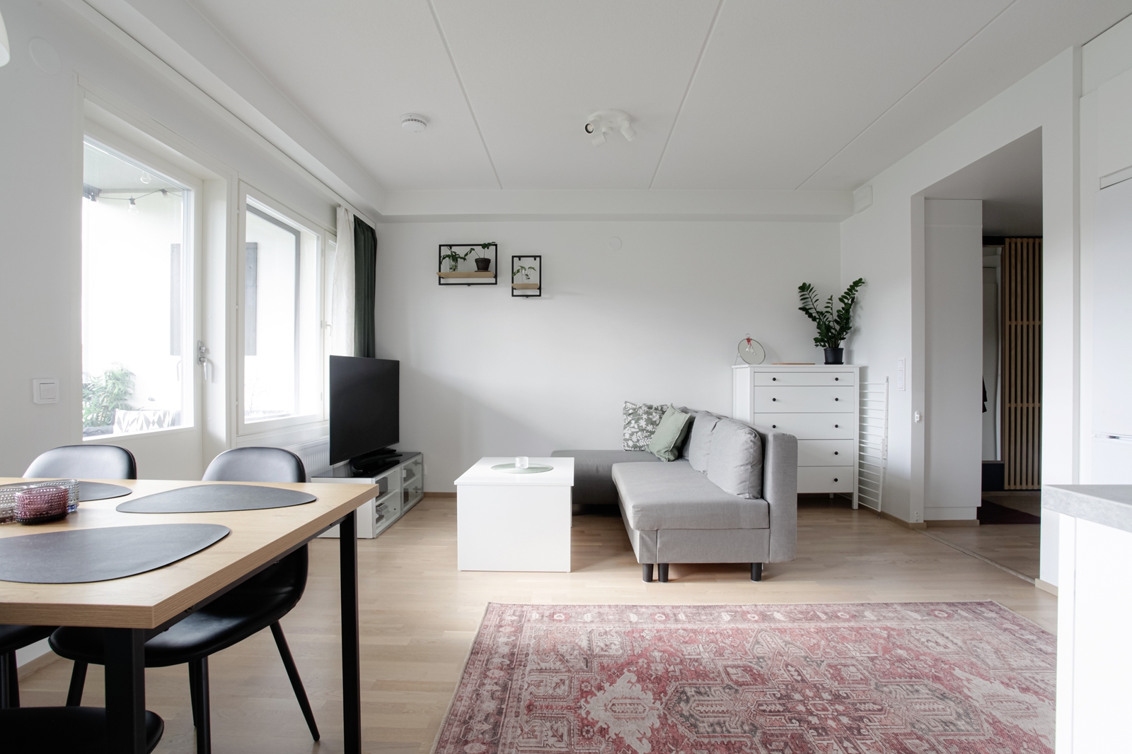 Pohjaratkaisu on toimiva ja käytännöllinen. Avara olohuone yhdistyy keittiöön muodostaen kodikkaan oleskelutilan, josta on käynti lasitetulle parvekkeelle. Tilava makuuhuone ja oma sauna lisäävät asumismukavuutta. Keittiössä on keraaminen liesi, erillisuuni ja laminaattitasot. Pesutiloissa sekä erillisessä wc:ssä on kaakeloidut seinät ja laattalattiat. Asunnossa on valokuituyhteys ja huoneistokohtainen varasto. Taloyhtiö sijaitsee omalla tontilla ja lämpenee energiatehokkaasti kaukolämmöllä. Jokaiselle huoneistolle kuuluu oma maksuton autopaikka. Lähellä sijaitsevat Etelä-Nummelan koulu ja päiväkoti sekä Prisma tekevät arjesta sujuvaa. Tämä kokonaisuus on harvinainen yhdistelmä nykyaikaisuutta, käytännöllisyyttä ja erinomaista sijaintia.