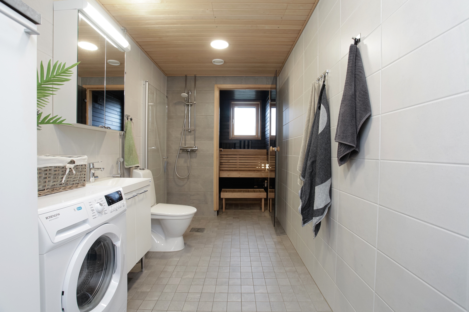 Pesukoneliitäntä, seinät (kaakeli), lattiat (laatta) |
