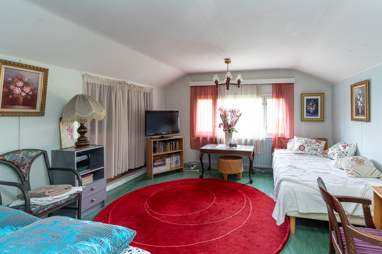 Lukumäärä: 4, yläkerran makuuhuoneissa muovimatto ja maalatut seinät.