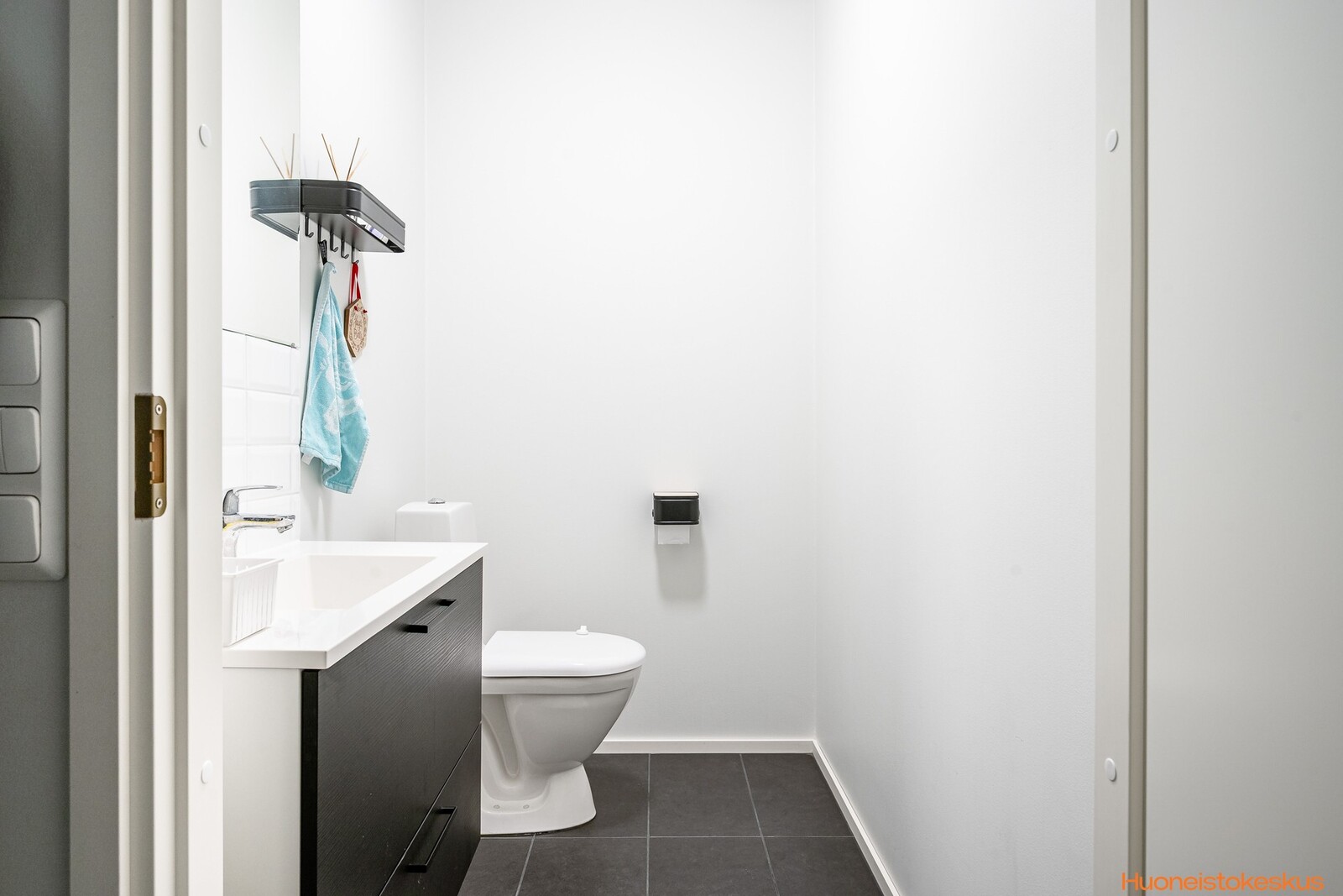 | Kodinhoitohuoneen kuvaus | Lattialämmitys, pyykkikaapit ja pesukoneliitäntä, lattiat (laatta), seinät (maali) |