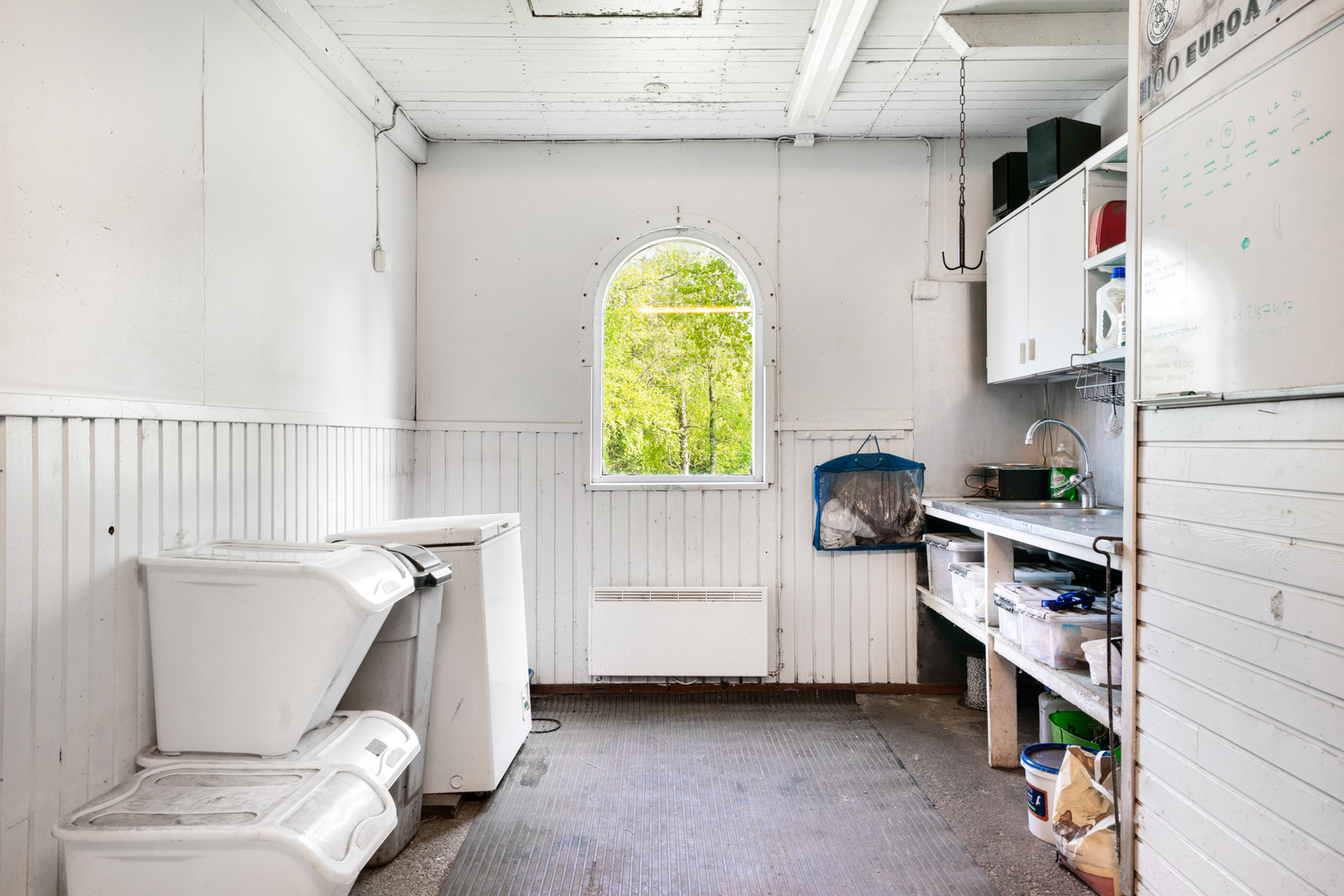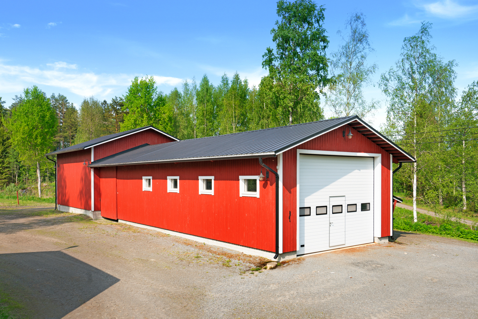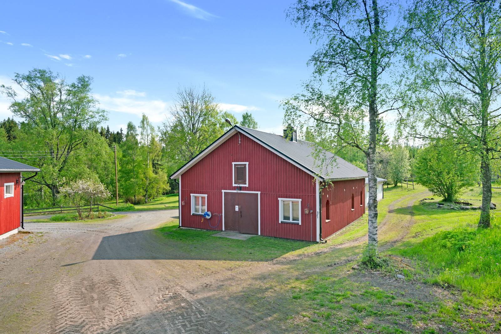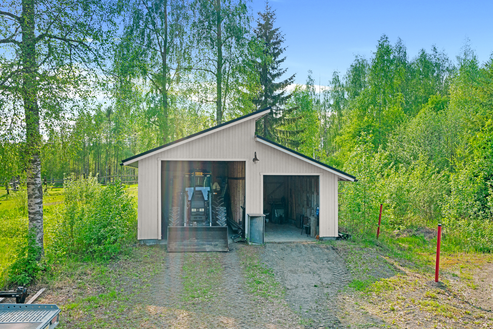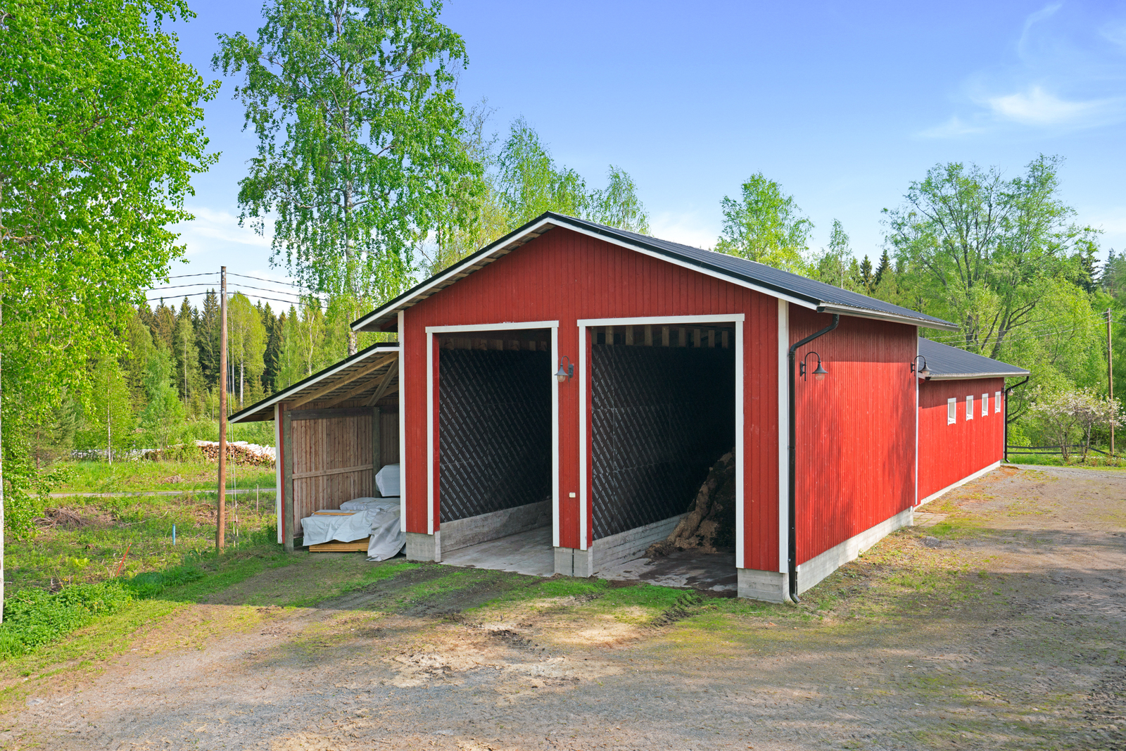 Eläinsuoja/hevostalli 250 k-m², konehalli (lantala, kuivikevarasto, heinävarasto) 177 k-m², traktorikatos n. 80 k-m², pihasauna n. 20 k-m².