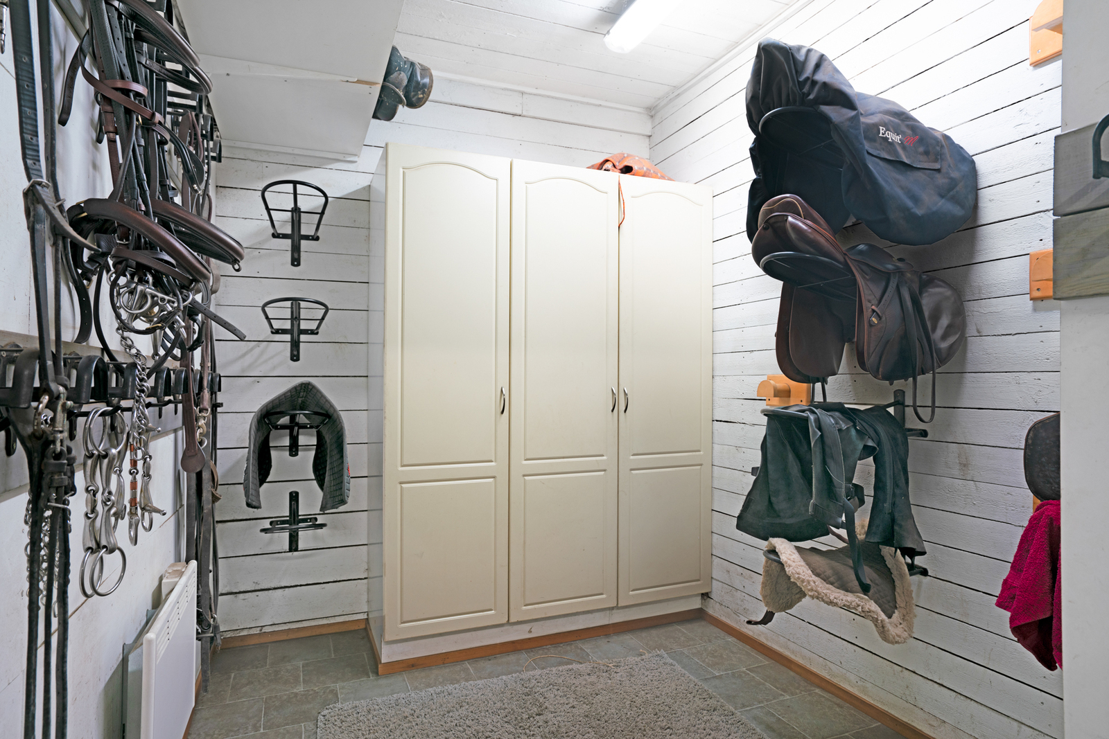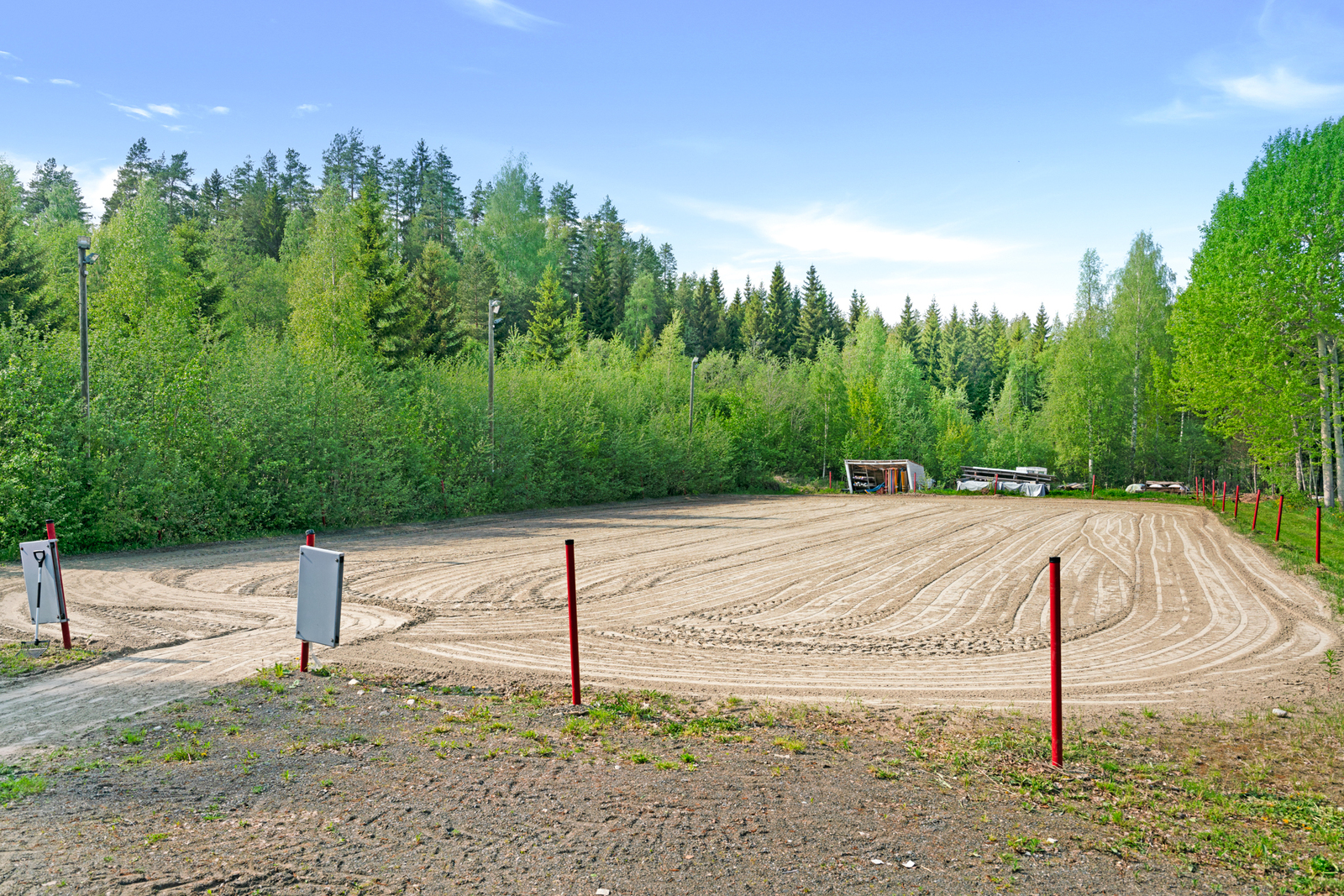 Talon yhteydessä lämmin autotalli, jossa myös kaivo. Hevostallirakennuksessa on mm. toim. huone, loimihuone ja satulahuone, hevosten hoitopaikka, hevosten pesupaikka ja karsinoita 10-11 (osa reilun kokoisia karsinoita). Konehallirakennuksessa on lantala, kuivikevarasto ja heinävarasto. Ratsastuskenttä hyvin perustettu (osittain salaojitettu). Piha-saunan harmaat vedet menevät kivipesään. Pihasauna tehty hirrestä ja sinne kantovesi. |