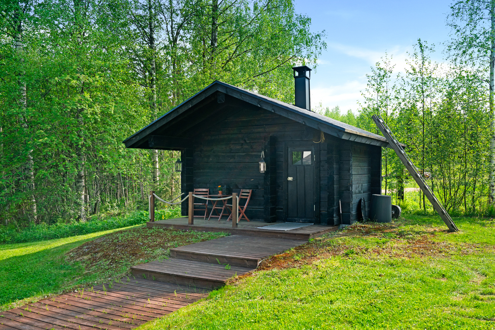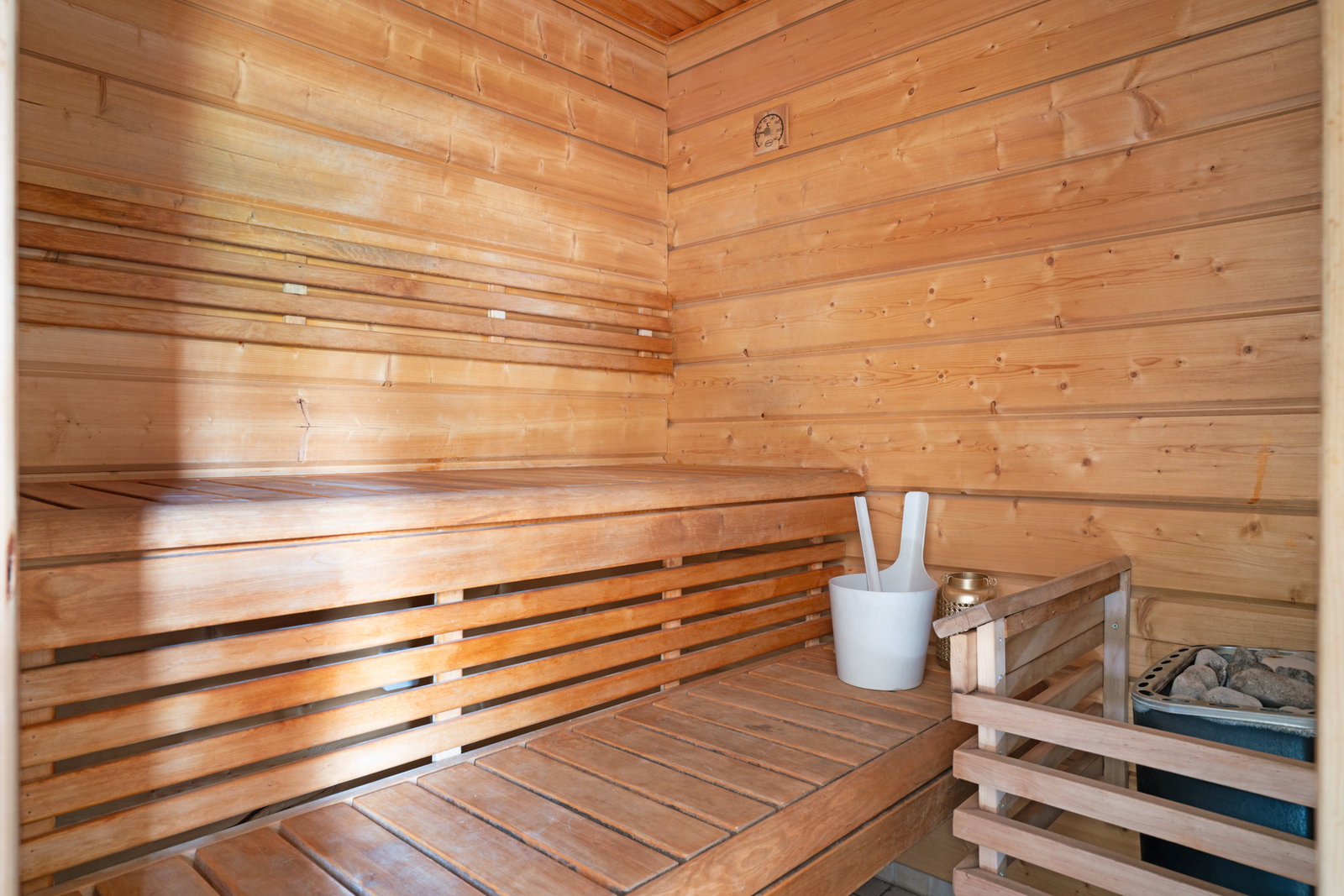 Seinät (puu), lattiat (laatta), Sähkökiuas, Lauteissa LED-nauha. |