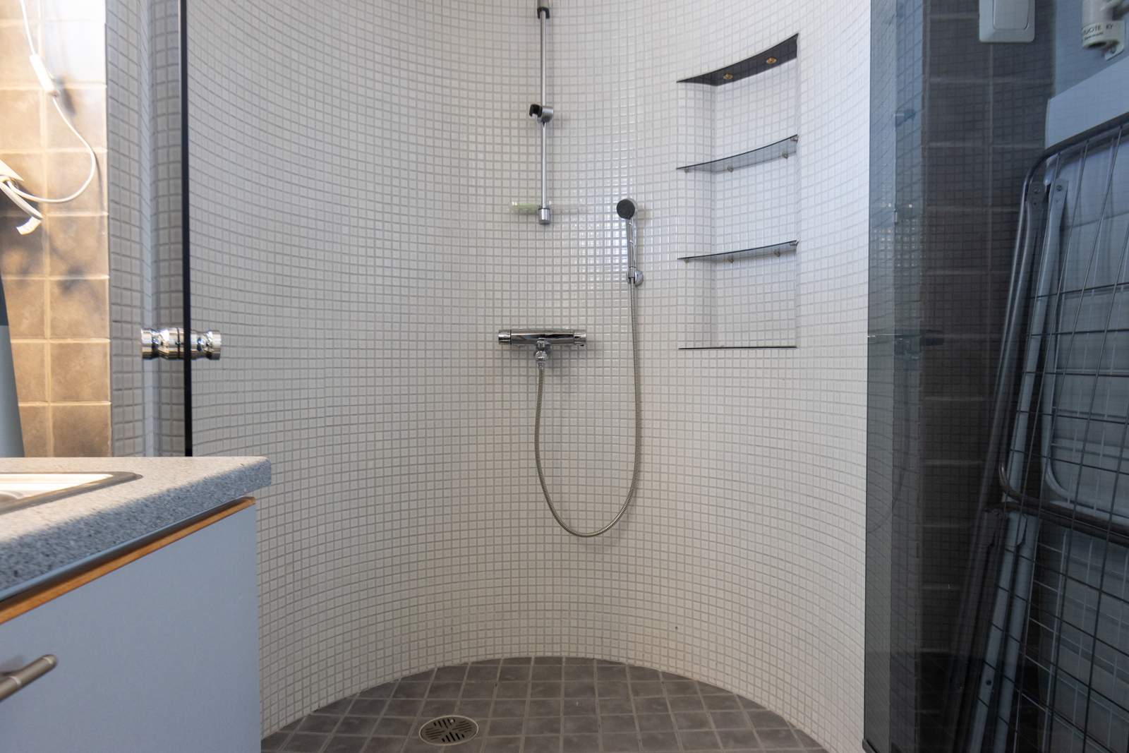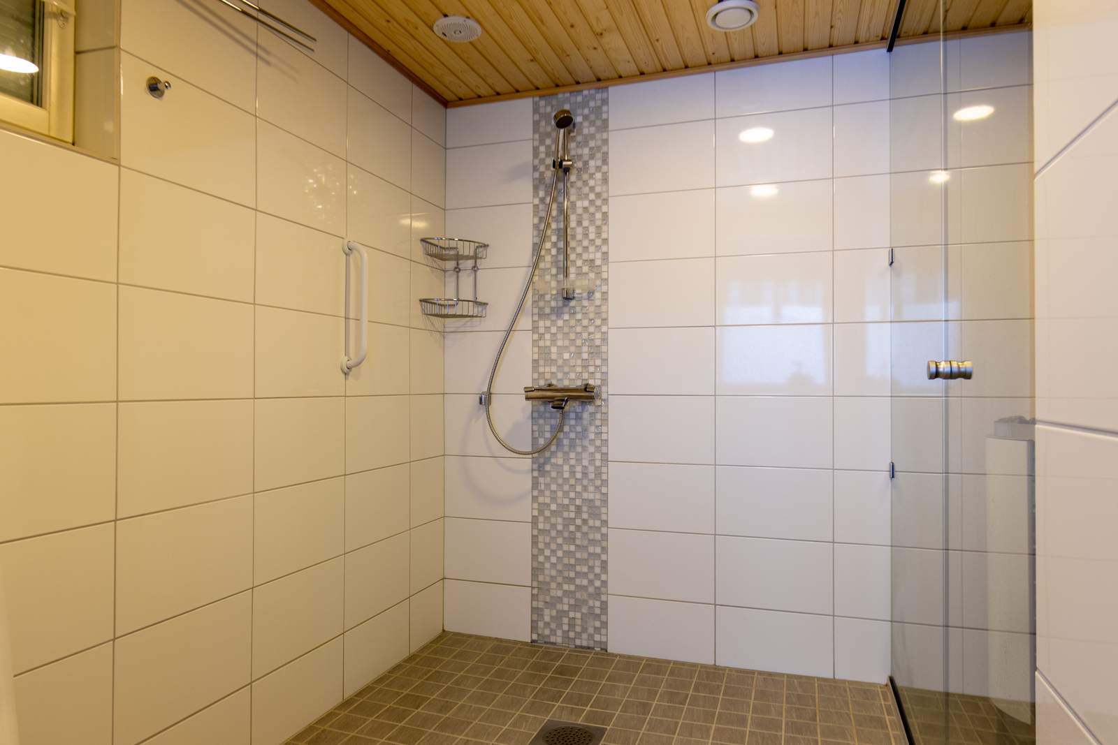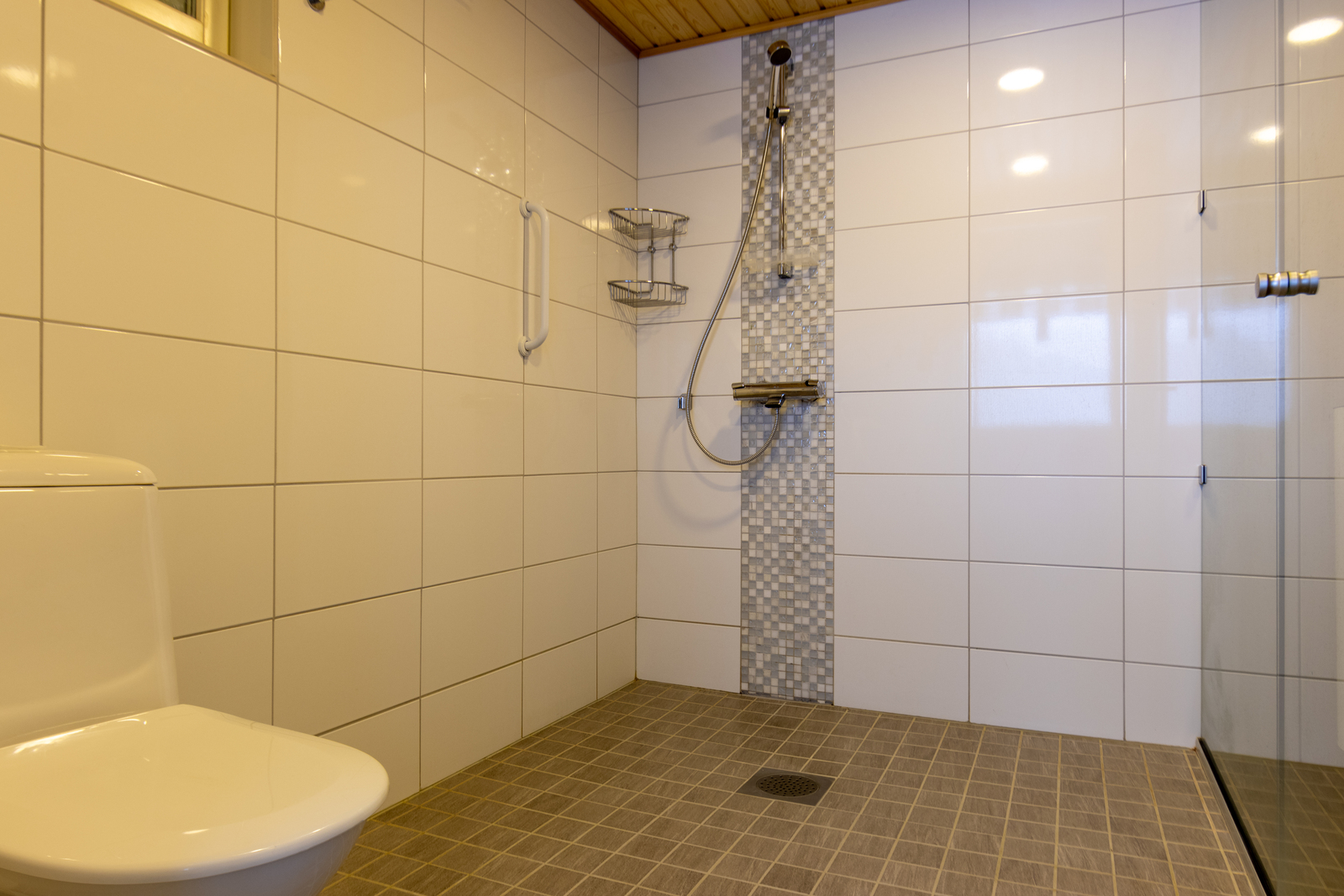 | Kylpyhuoneen kuvaus | Lattialämmitys, peilikaappi, suihku ja wc-istuin, seinät (kaakeli), lattiat (laatta) |