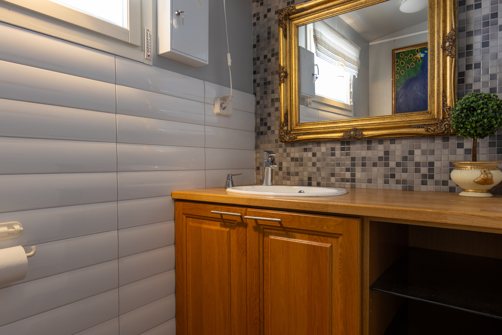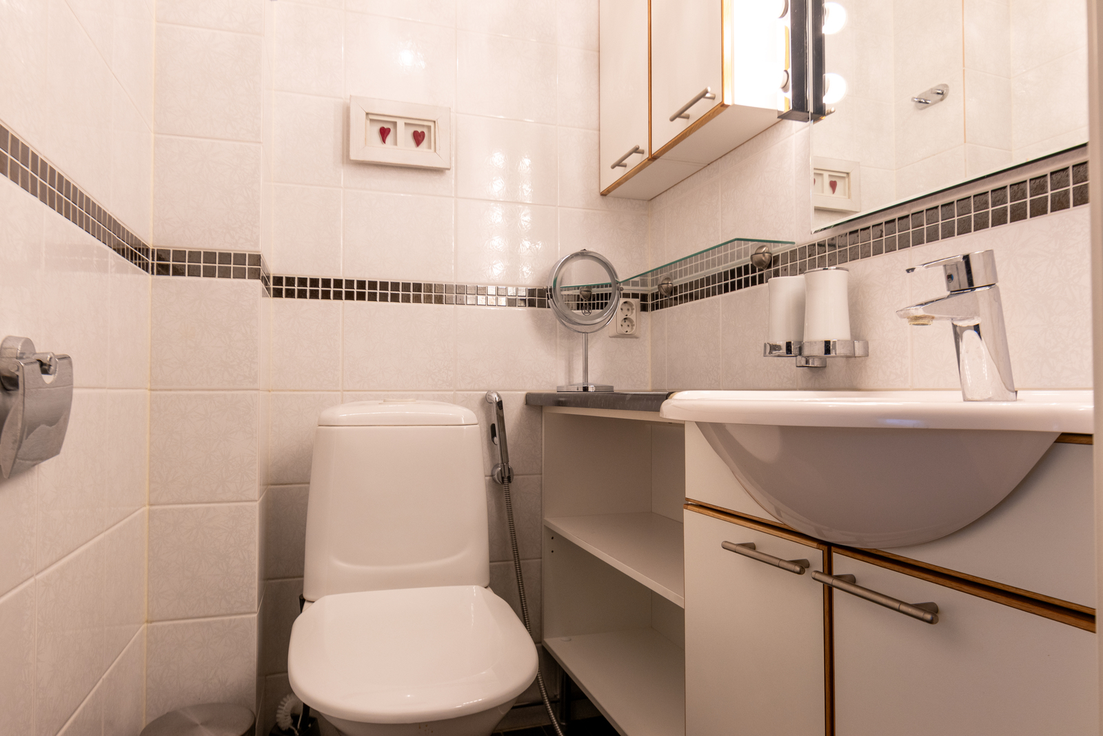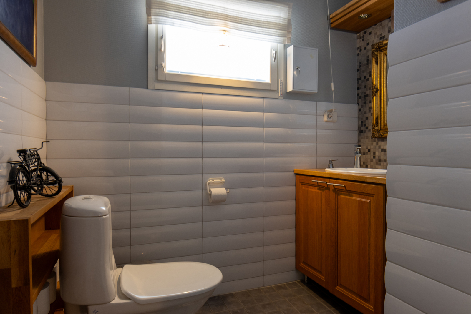 | Kylpyhuoneen kuvaus | Lattialämmitys, peilikaappi, suihku ja wc-istuin, seinät (kaakeli), lattiat (laatta) |