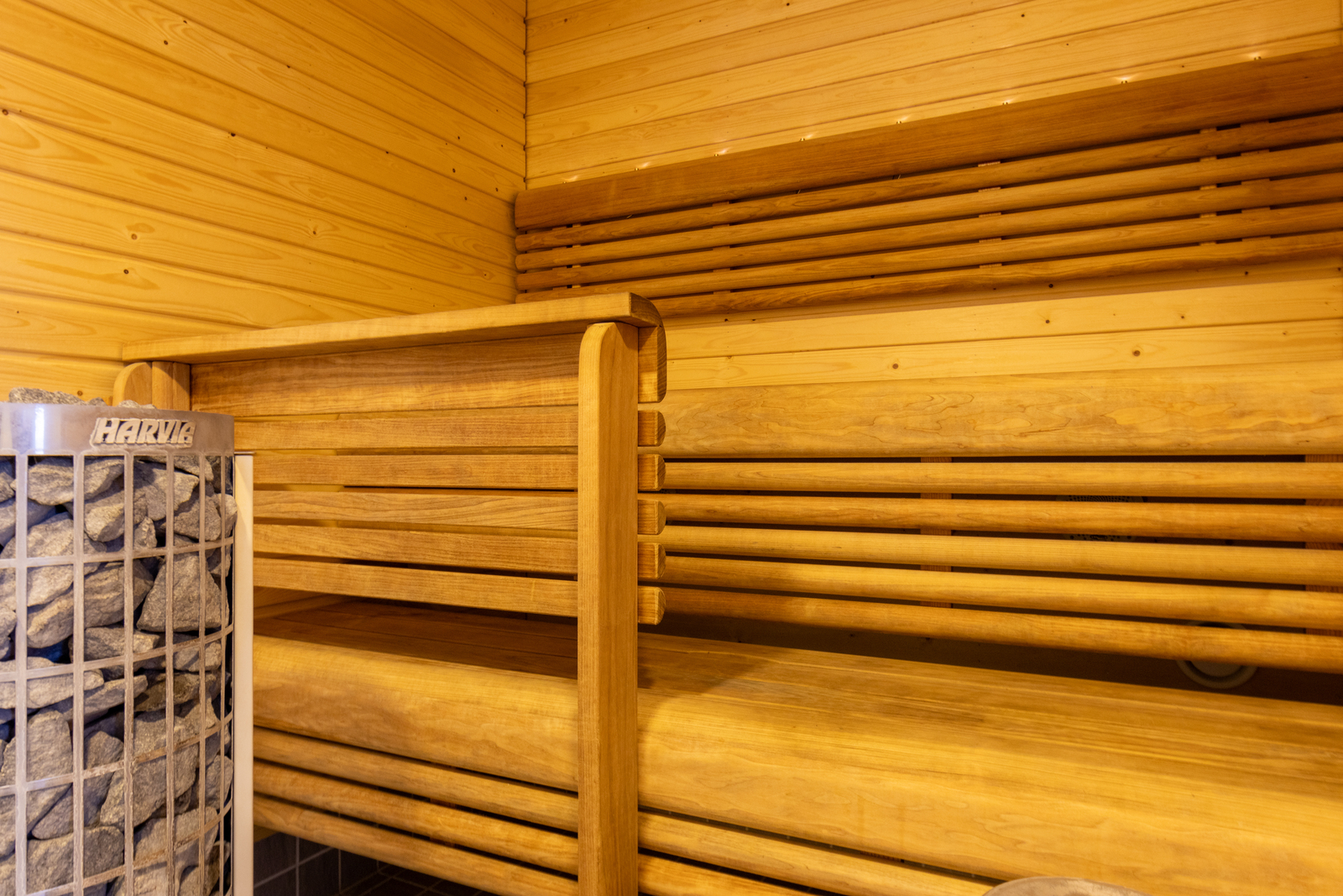 | Saunan kuvaus | Seinät (puu), lattiat (laatta), Sähkökiuas |