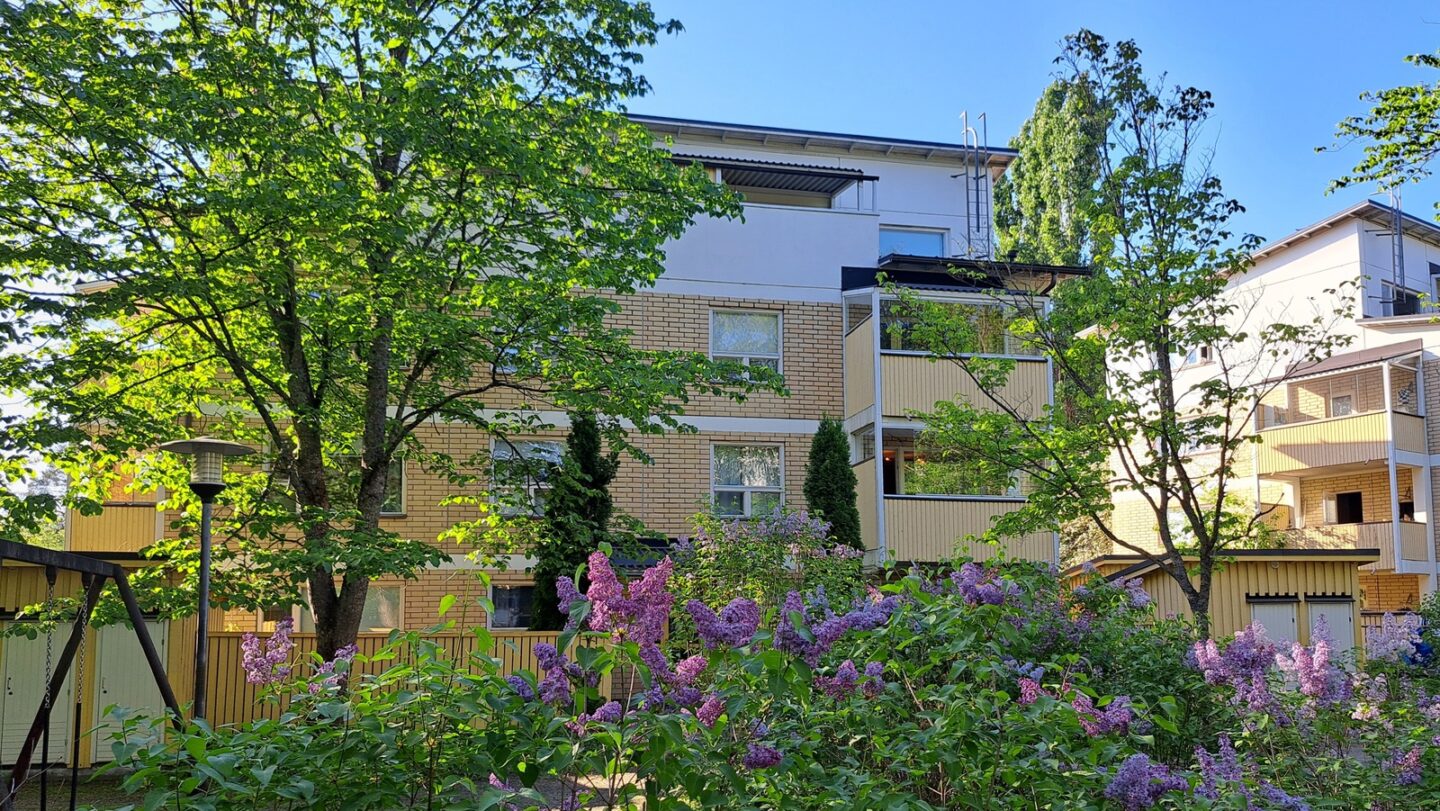 Tässä v. 1984 rakennetun talon asunnossa on viihdytty hyvin, mutta se kaipaa piristeeksi uutta pintaa täyttääkseen tämän päivän asumisen vaatimukset, joten pääset heti käärimään hihat ja tekemään siitä mieleisesi. Keittiön kaapistot ovat hyvässä kunnossa, vaikka eivät aivan tuoreet olekkaan ja sen käytännöllisyydestä kertoo se, että sinne mahtuu isompikin ruokapöytä. Iso kylpyhuone on kaakeloitu, mutta lattialla muovimatto. Asunto sijaitsee kolmannessa kerroksessa (ei hissiä) ja se on läpitalon kulmahuoneisto, joten valoa riittää. Lasitetulle parvekkeelle pääset olohuoneesta ja talon piha ympäristöineen onkin joka suuntaan ihanan vehreä. Asunnossa on oma sauna, joka on lähes käyttämätön, ja jonka lämmität aina halutessasi.