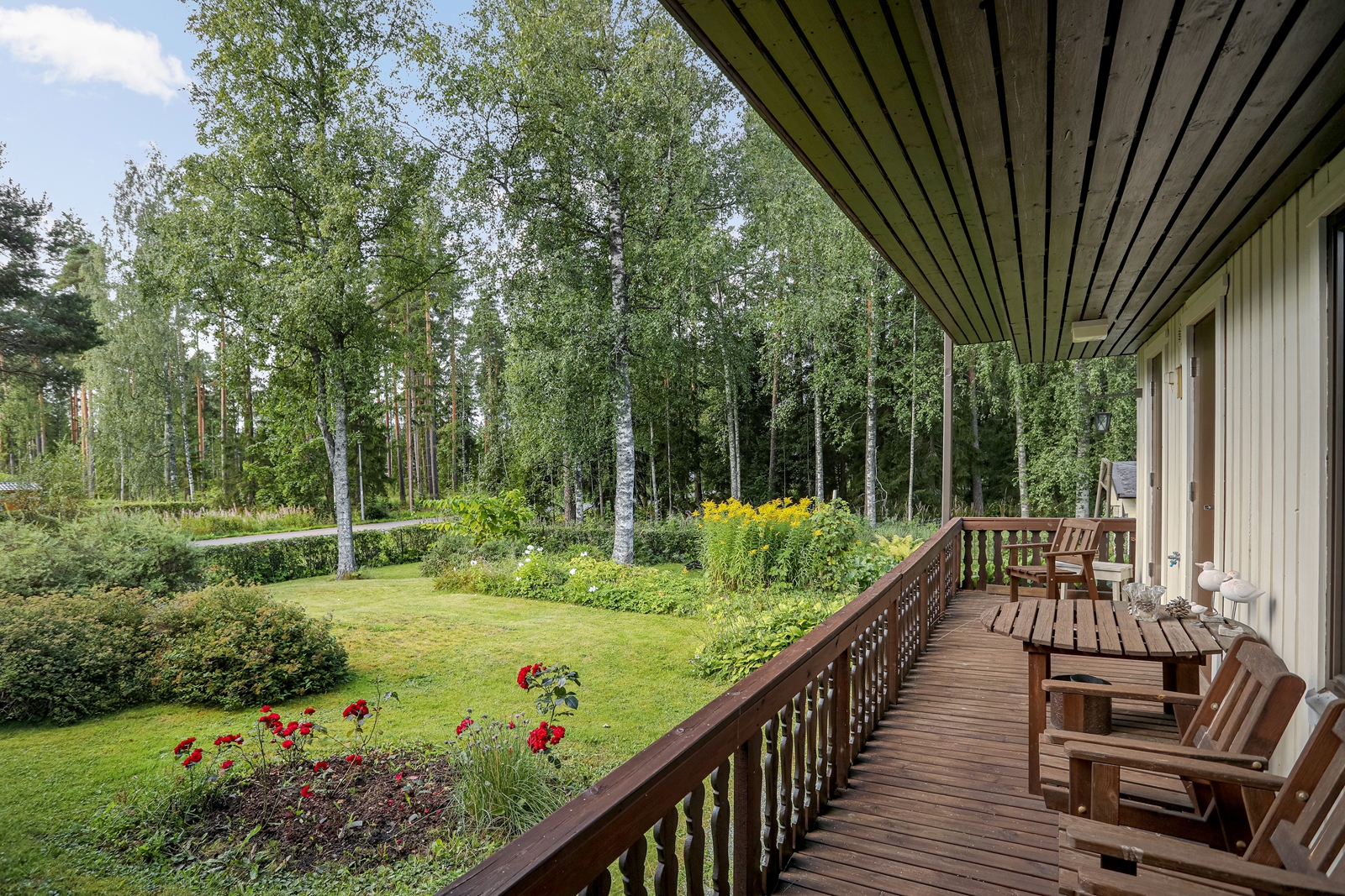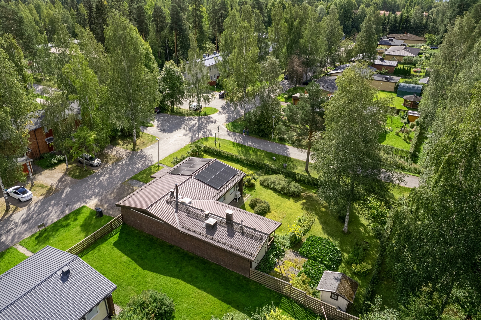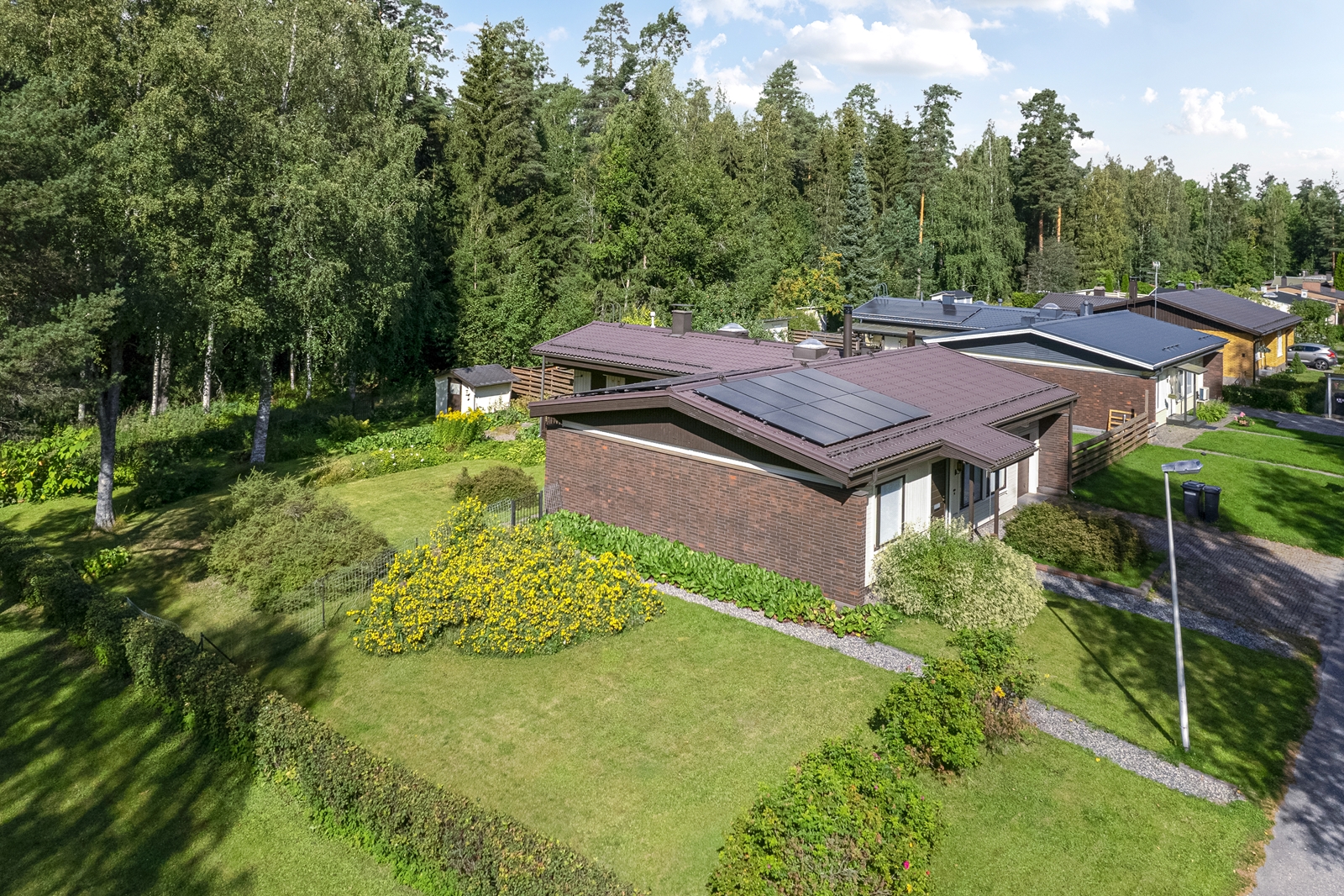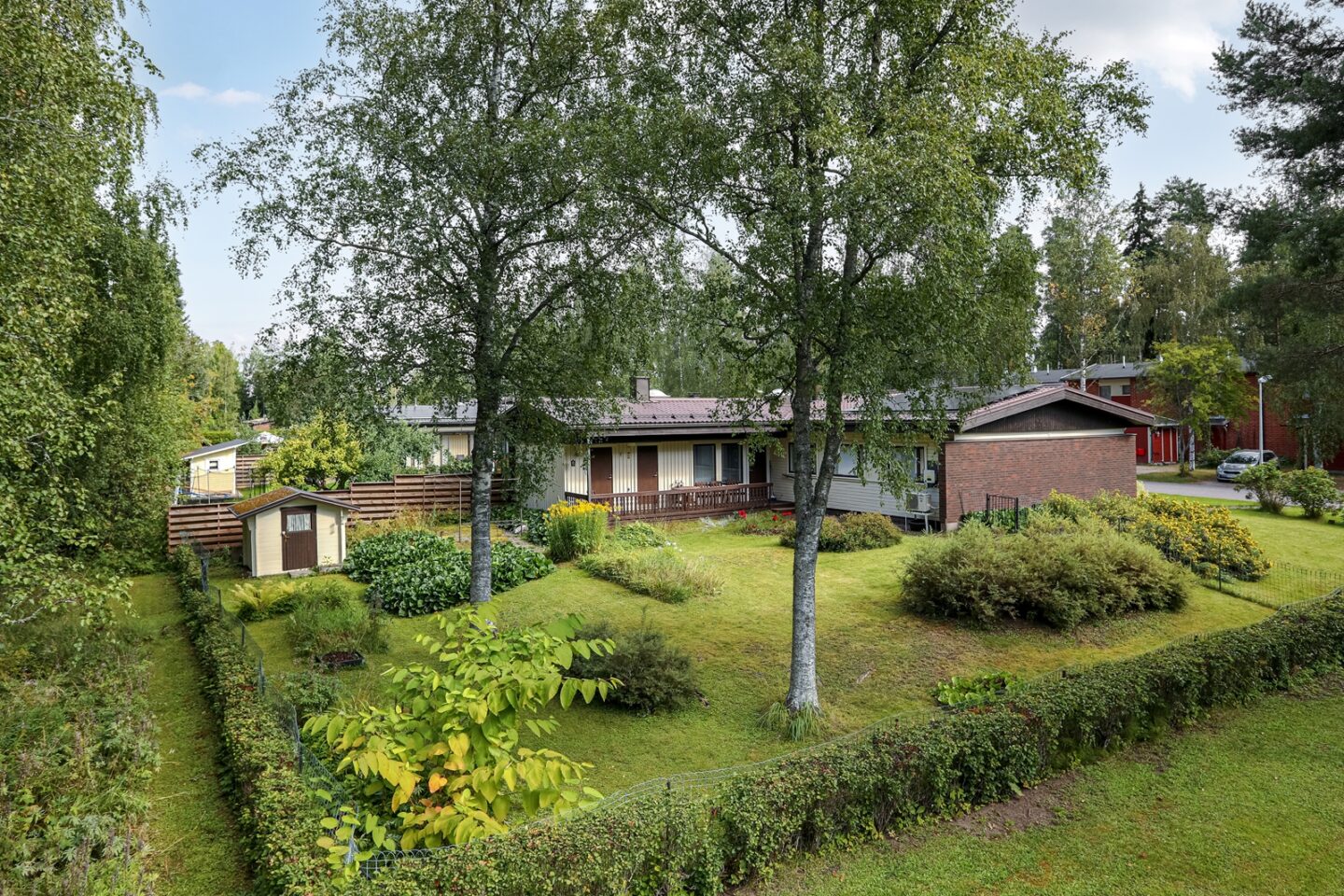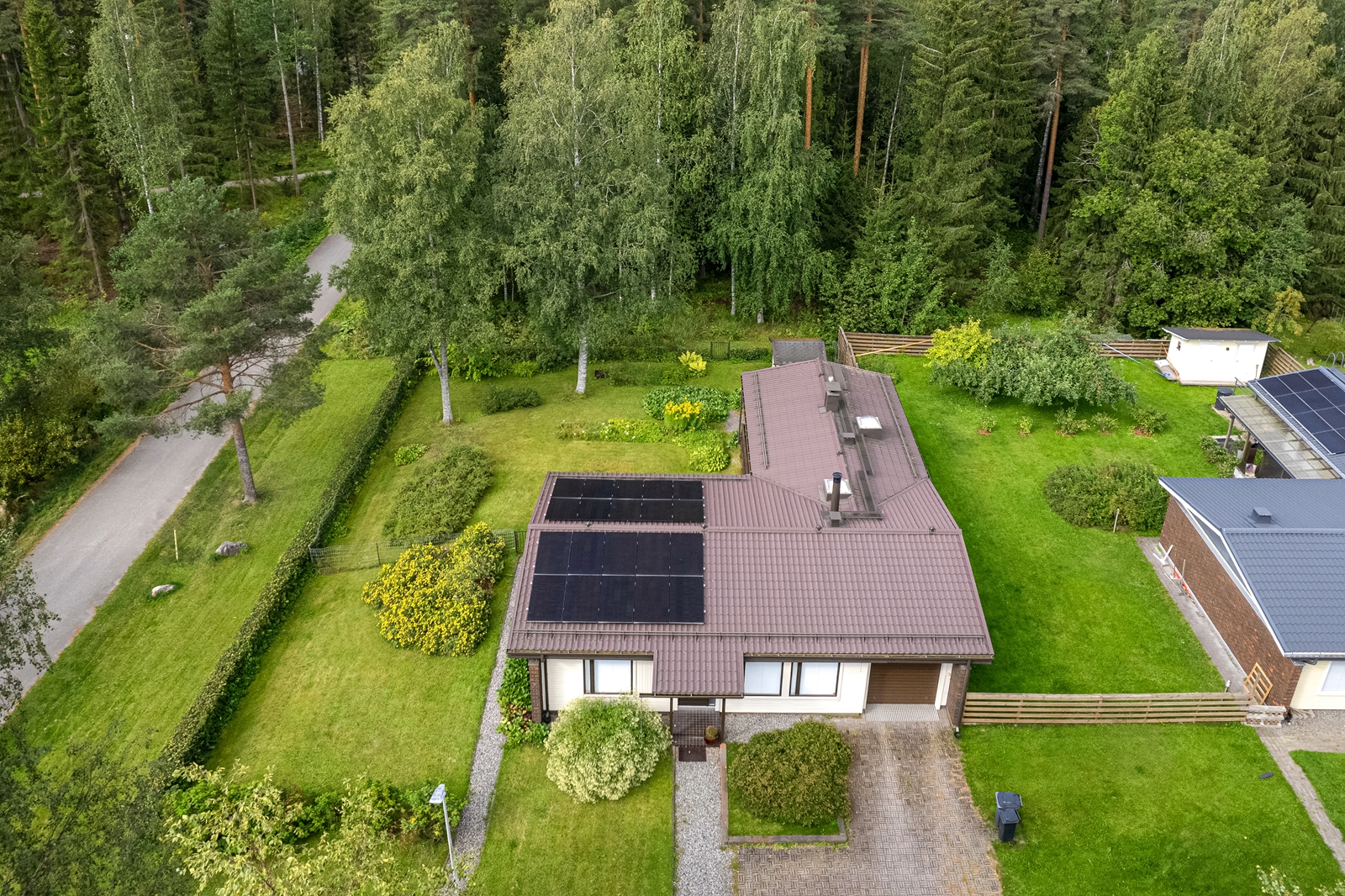 | Lisätietoja tontista | Tasainen kulmatontti, jolla nurmikkoa ja istutuksia. Takarajalta tontti rajoittuu Patomäen puistoalueeseen. Erittäin suojaisa ja viihtyisä katettu terassi, jonne käynti suoraan saunaosastolta. |