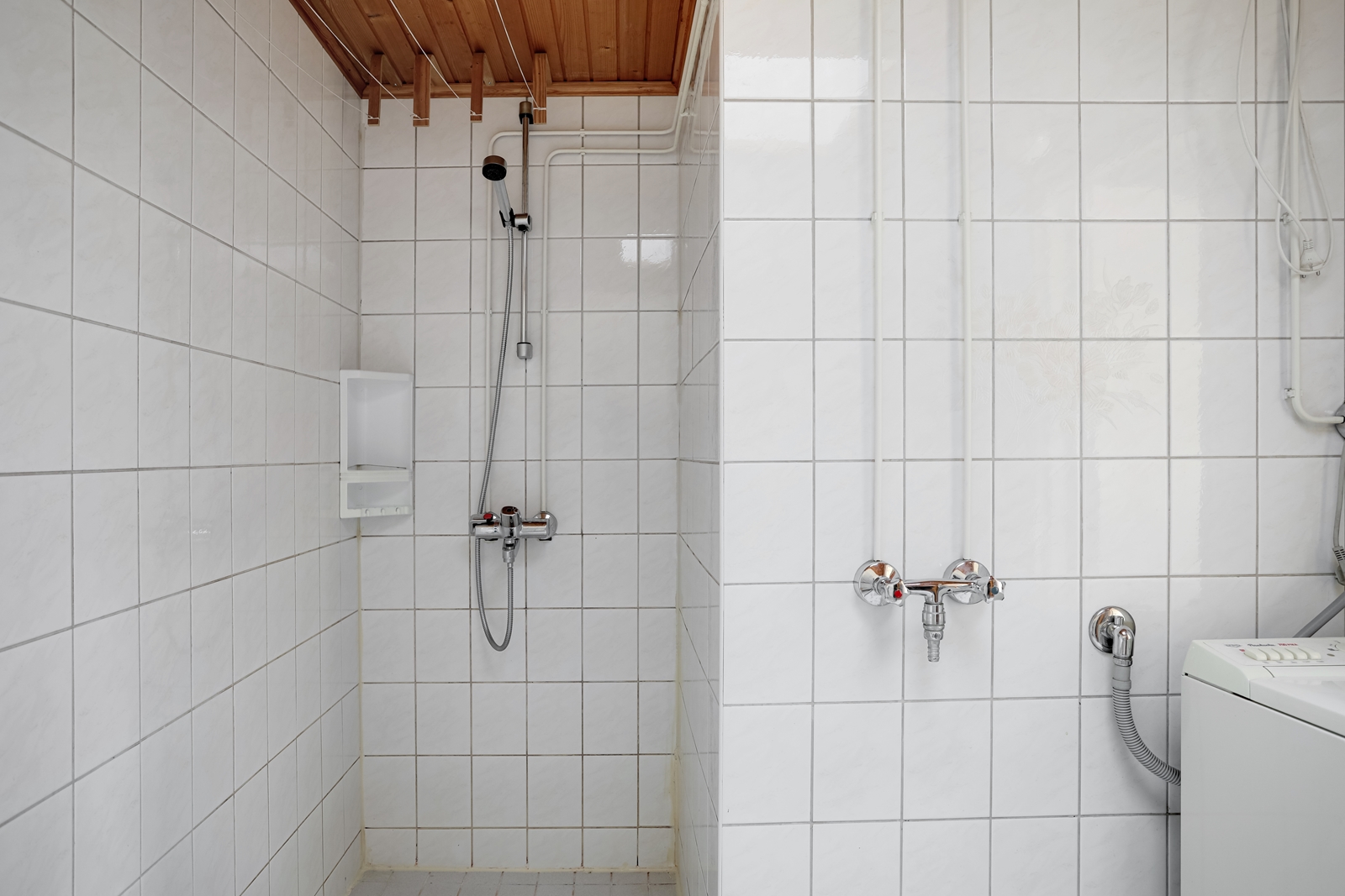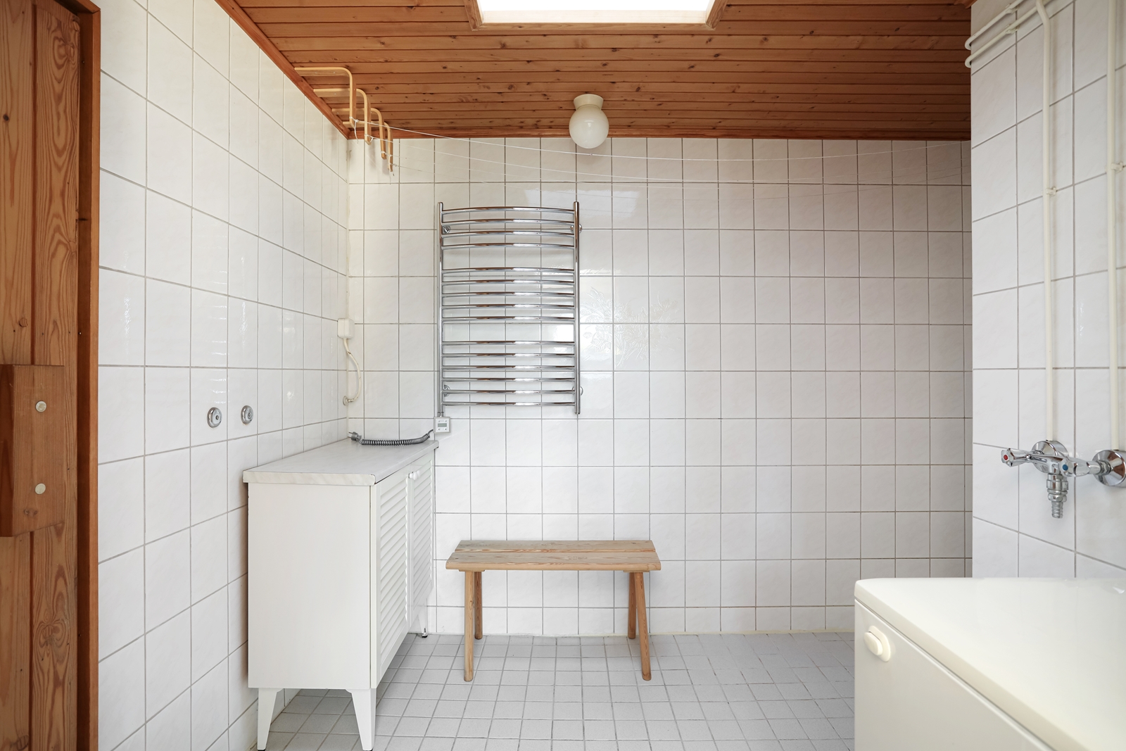 | Kylpyhuoneen kuvaus | Suihku ja pesukoneliitäntä, seinät (kaakeli), lattiat (laatta), Peruskorjattu v. 1990, kokonaan laatoitettu. Kattoikkuna. Käynti suoraan terassille takkahuoneen kautta. |