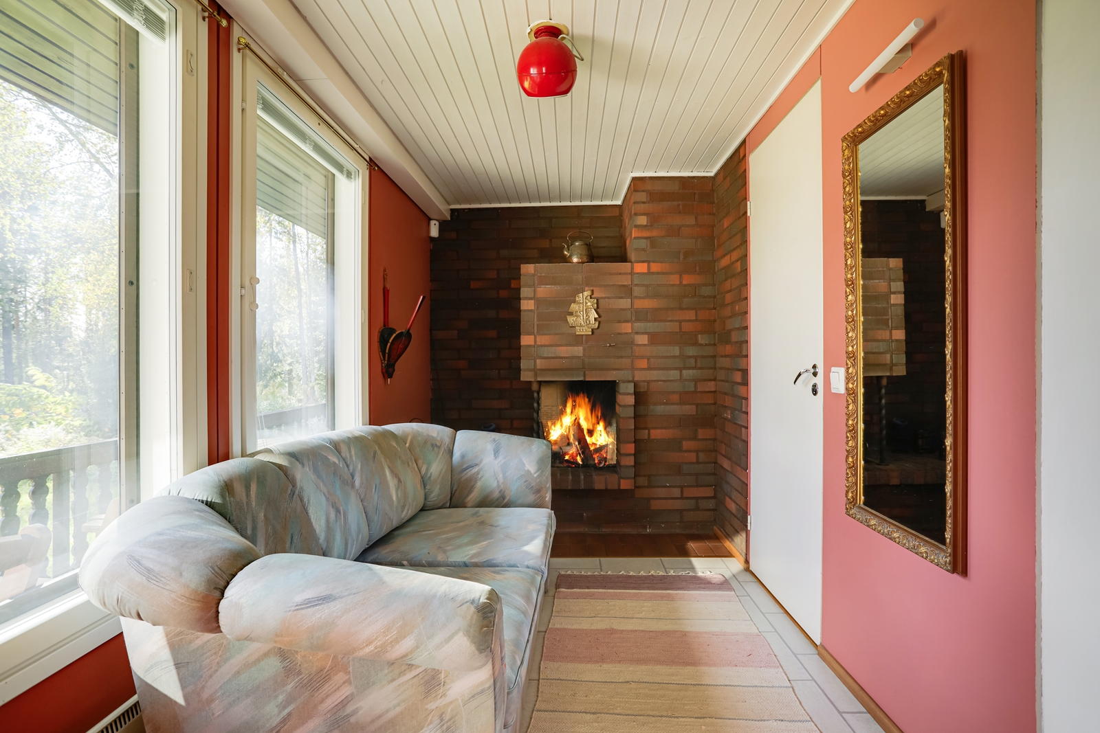 Olohuoneessa on varaava takka, joka luo kodikasta tunnelmaa ja tarjoaa lämpöä viileinä iltoina. Saunaosasto ja takkahuoneen kautta kulkeva kulku katetulle terassille tekevät tästä kodista täydellisen paikan rentoutumiseen.
