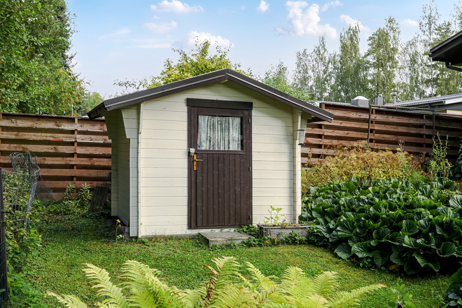 Tontti on oma, ja sen koko on 806 m², mikä tarjoaa runsaasti tilaa ulkoiluun ja puutarhanhoitoon. Lisäksi talossa on autotalli ja kylmä pihavarasto. Sijainti on erinomainen: lähellä kaupunkia, mutta silti rauhallisella asuinalueella, josta on hyvät liikenneyhteydet ja puisto lähellä.