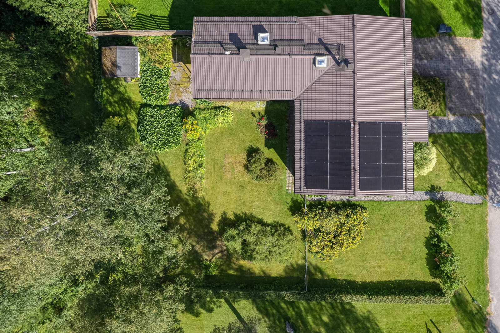 Talon lämmitys hoituu sähköllä ja ilmalämpöpumpulla sekä varaavalla takalla ja lisäksi aurinkopaneelit tuottavat lisäenergiaa. Kylpyhuone on kokonaan laatoitettu ja siitä on suora pääsy terassille, mikä tuo arkeen ripauksen ylellisyyttä.