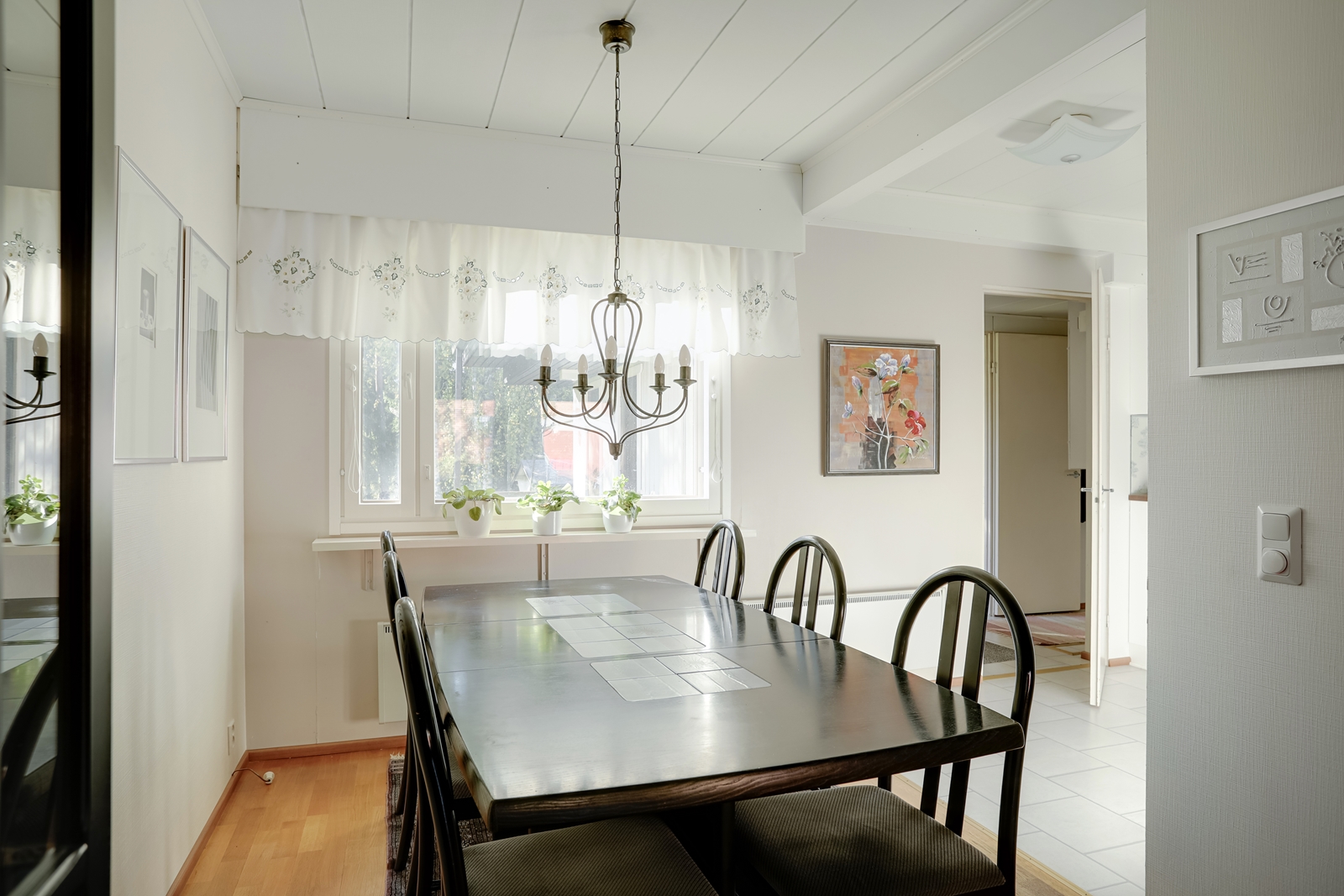 | Olohuoneen kuvaus | Seinät (tapetti), lattiat (parketti) |