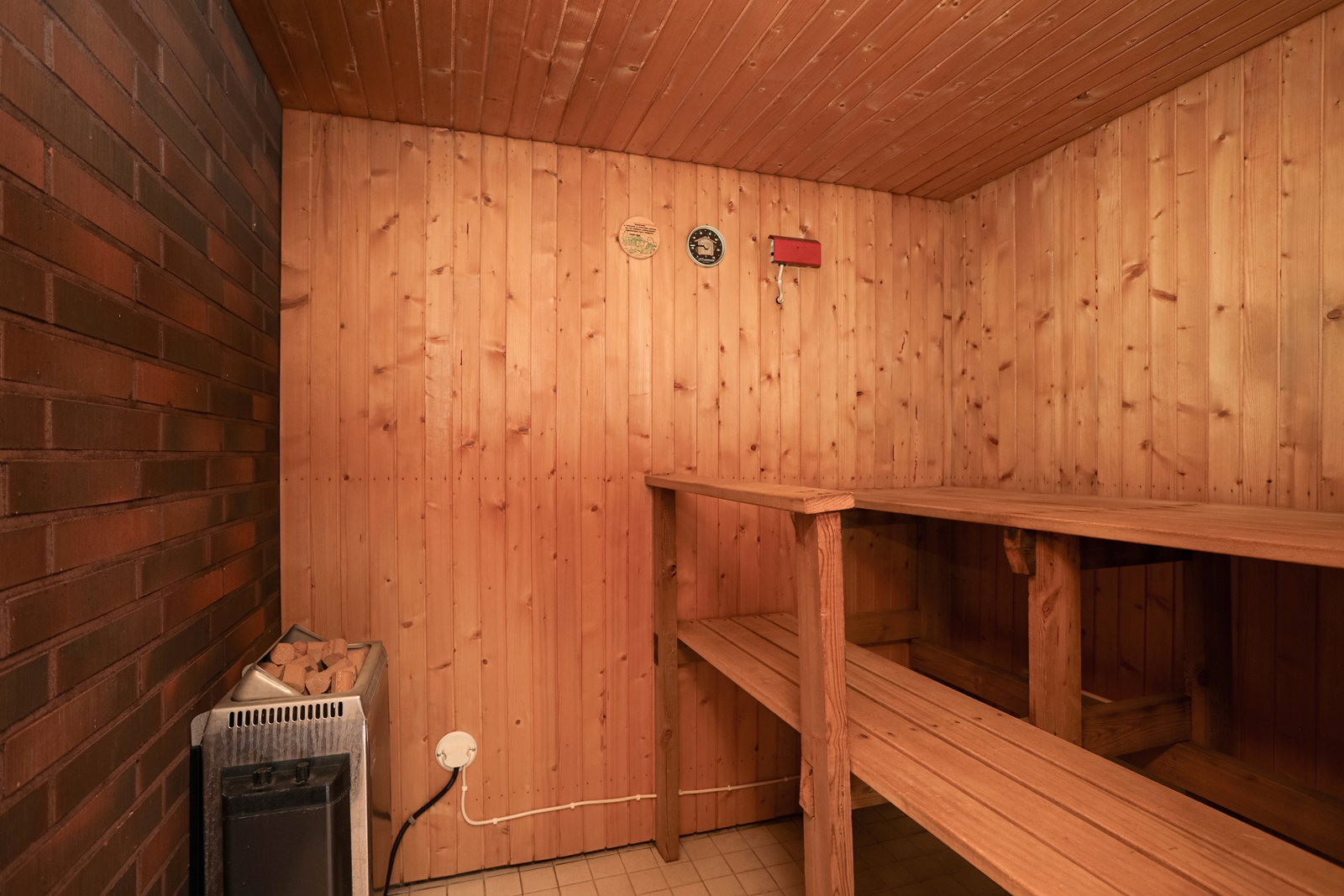 | Saunan kuvaus | Seinät (puu), lattiat (laatta), Sähkökiuas |