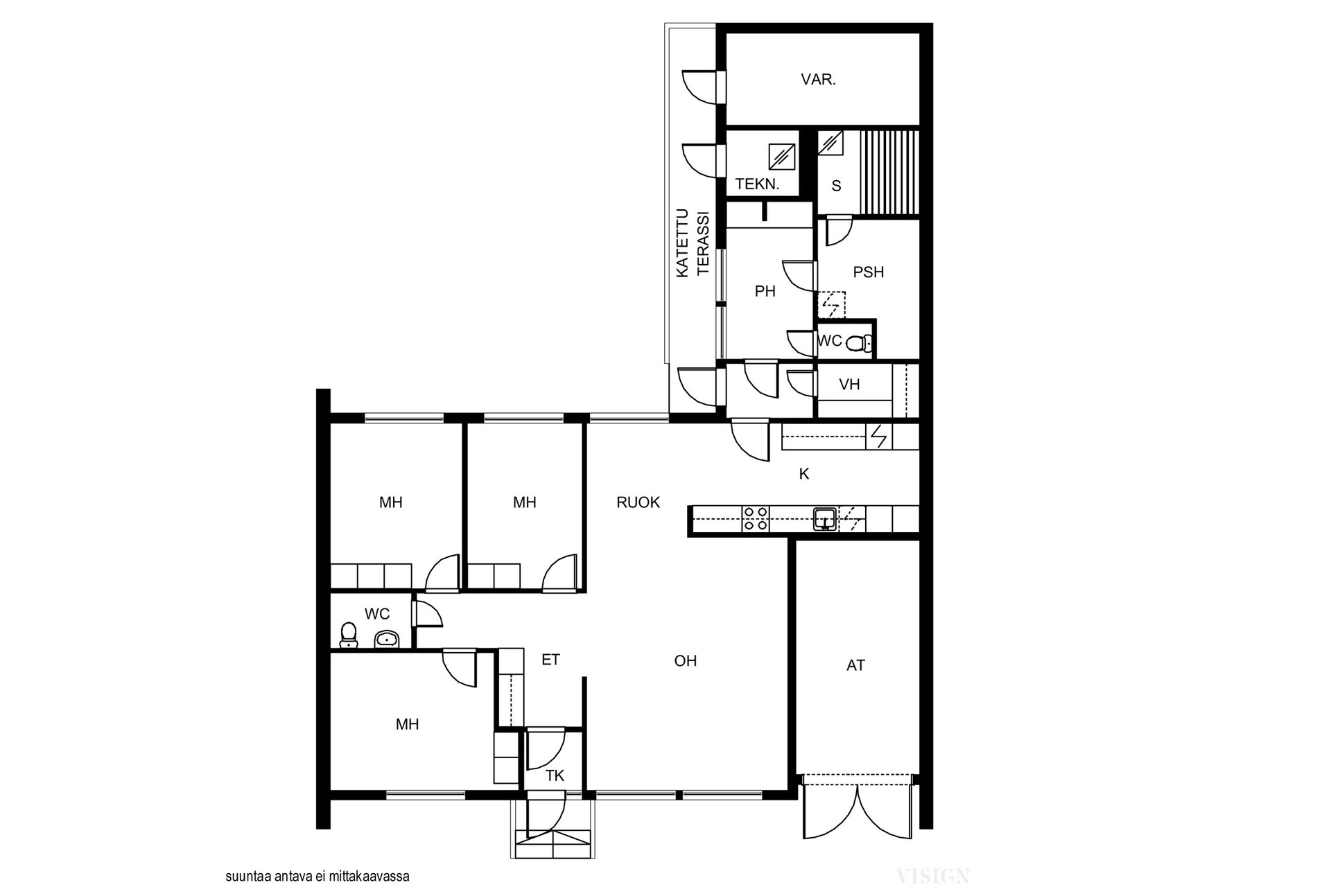 | Keittiön kuvaus | Liesi (Induktioliesi), työtasot (laminaatti), seinät (maali), lattiat (laminaatti), liesituuletin (hormiin liitetty), jääkaappipakastin, erillisuuni ja liesi, Keittiö on kokonaisuudessaan peruskorjattu v. 2015. |