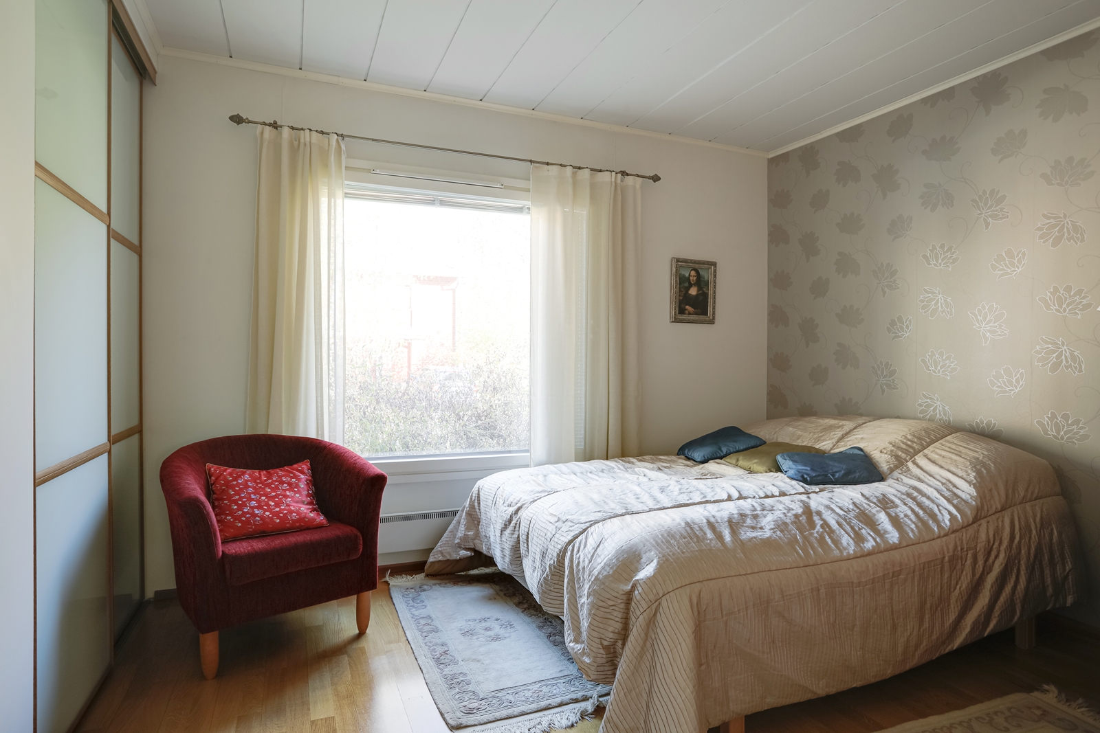 | Makuuhuoneen kuvaus | Lukumäärä: 3, seinät (maali ja tapetti), lattiat (parketti) |