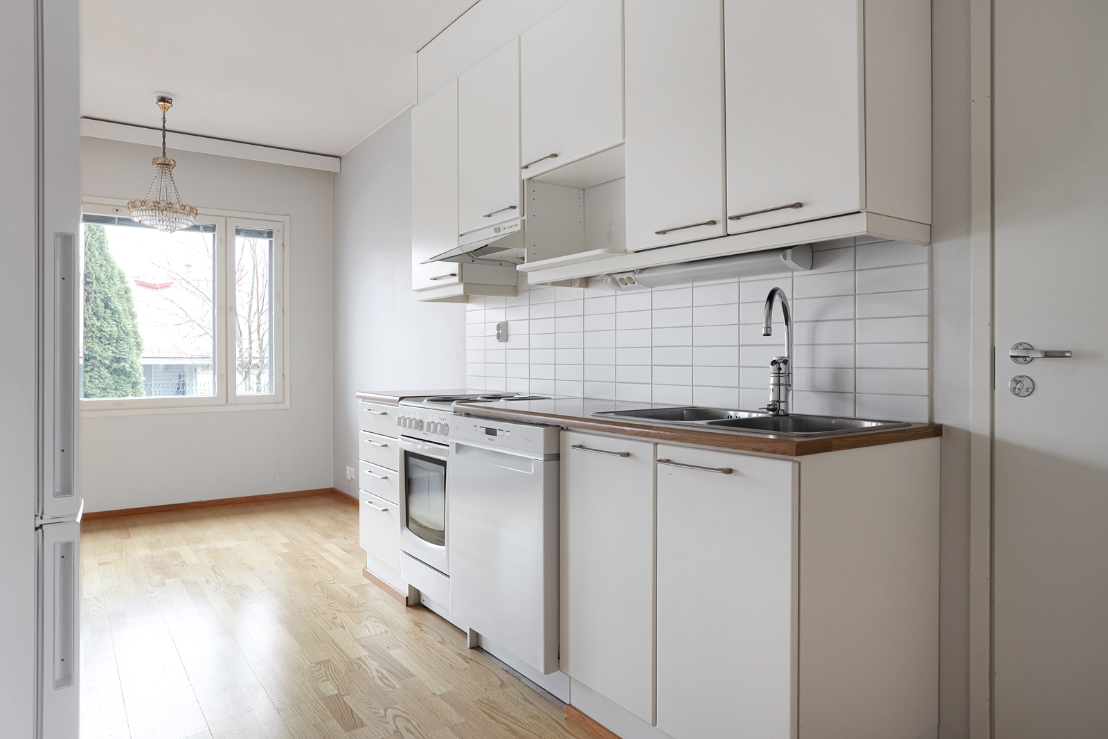| Keittiön kuvaus | Liesi (Keraaminen liesi), seinät (maali), lattiat (parketti), jääkaappipakastin, astianpesukone ja liesituuletin |