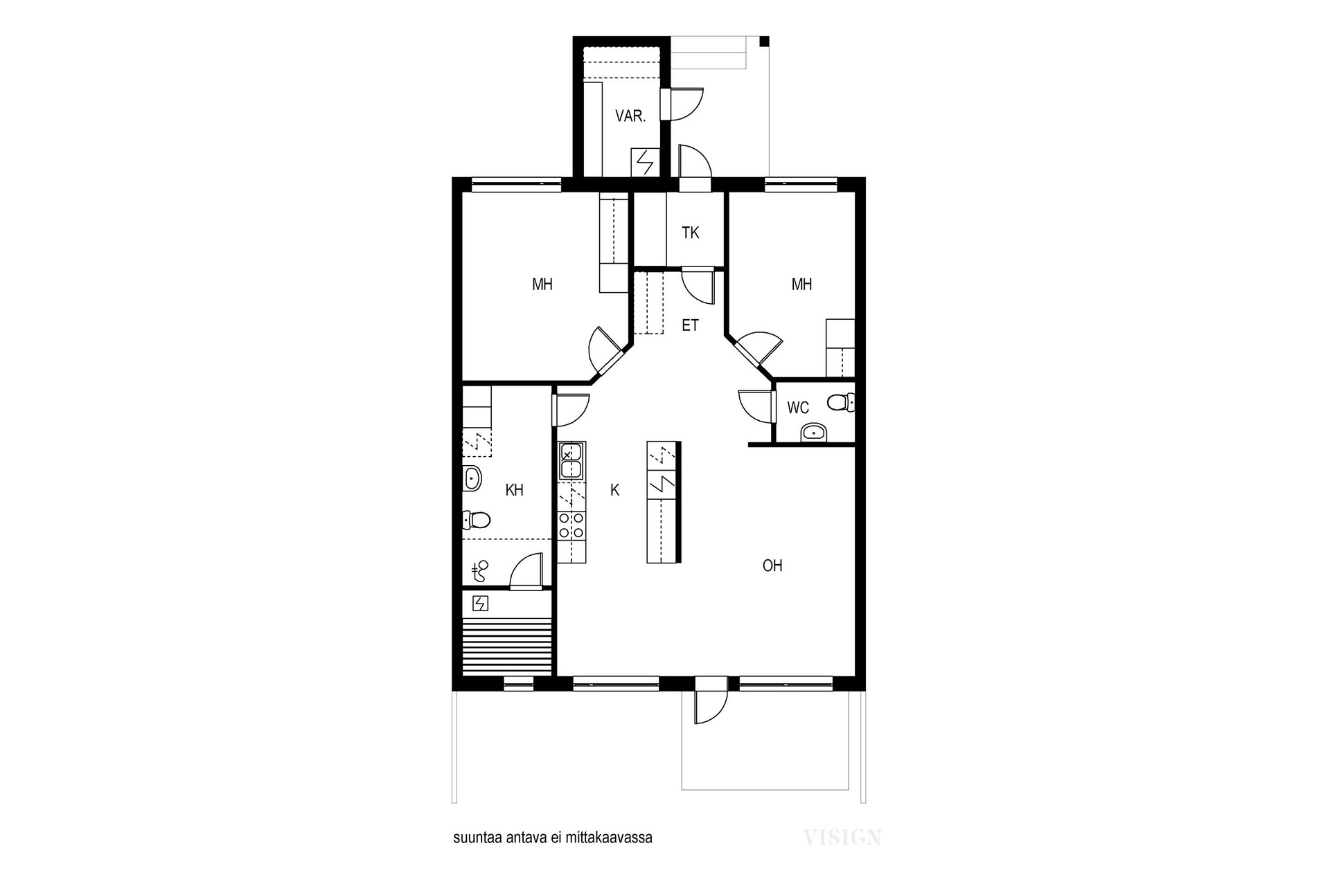 | Huoneistoselitelmä | 3h, k, kh/wc, s, wc, terassi |