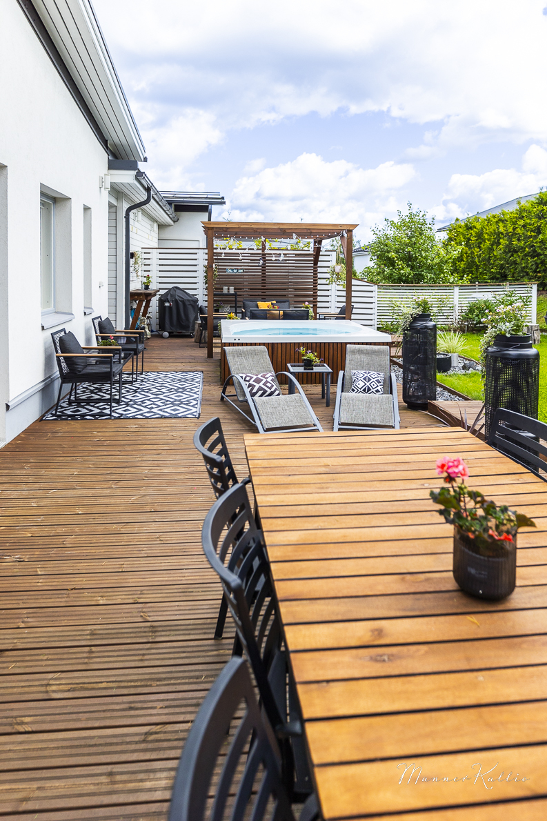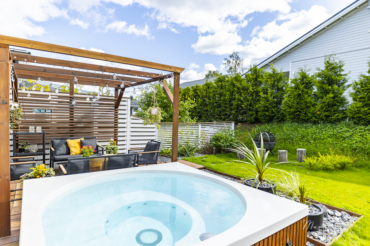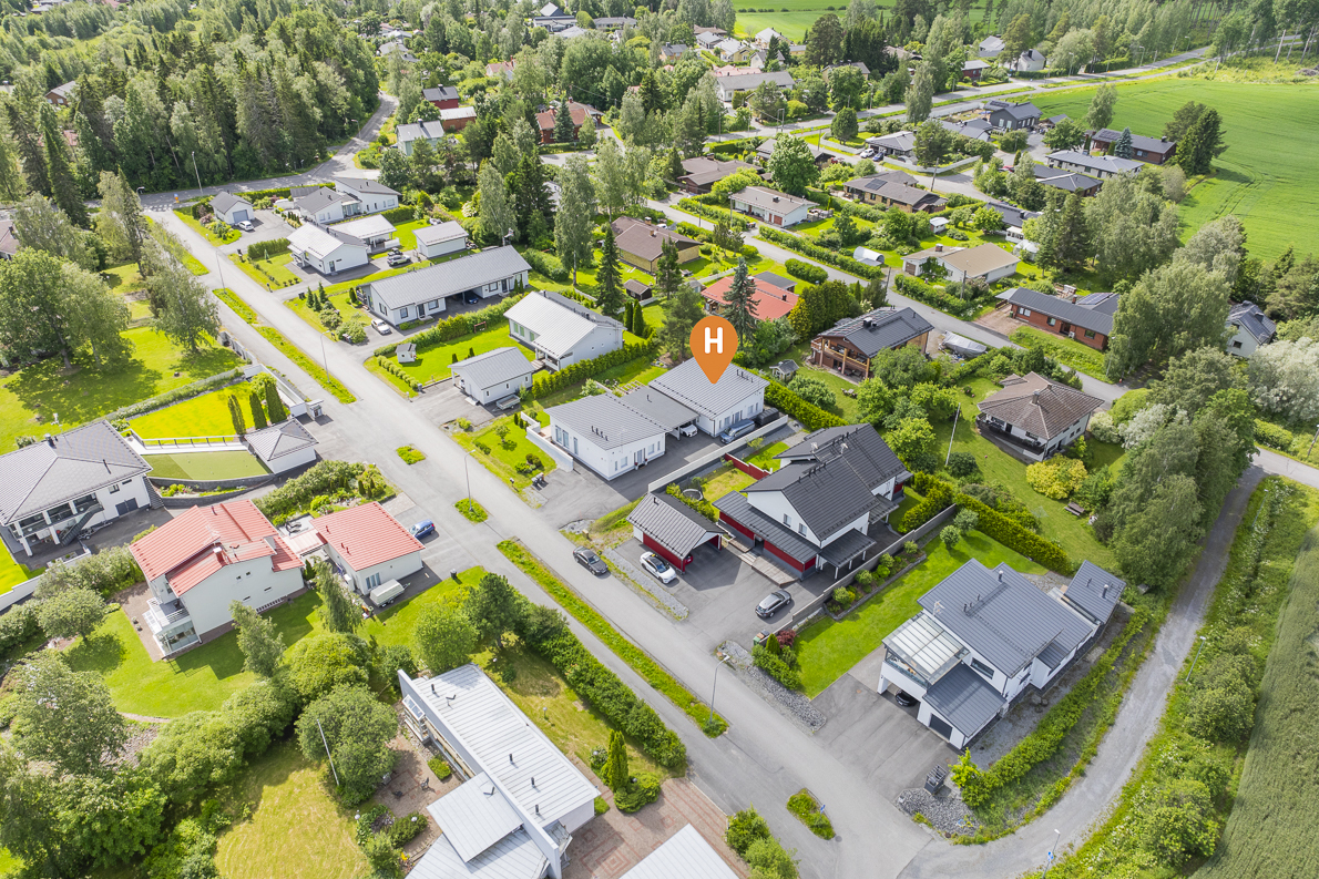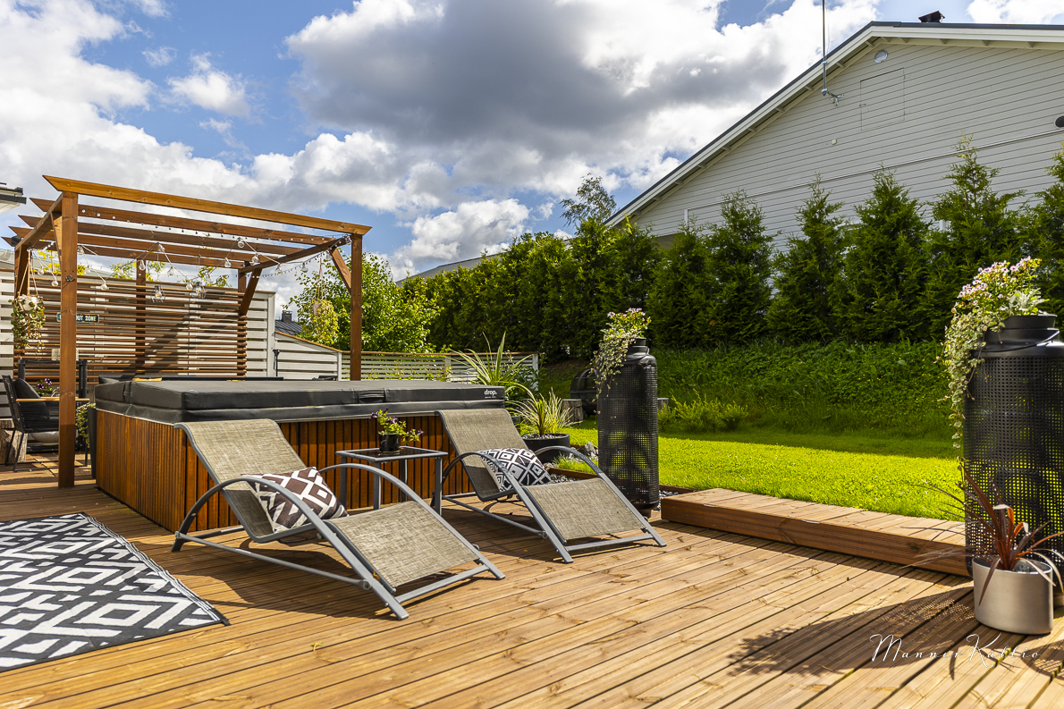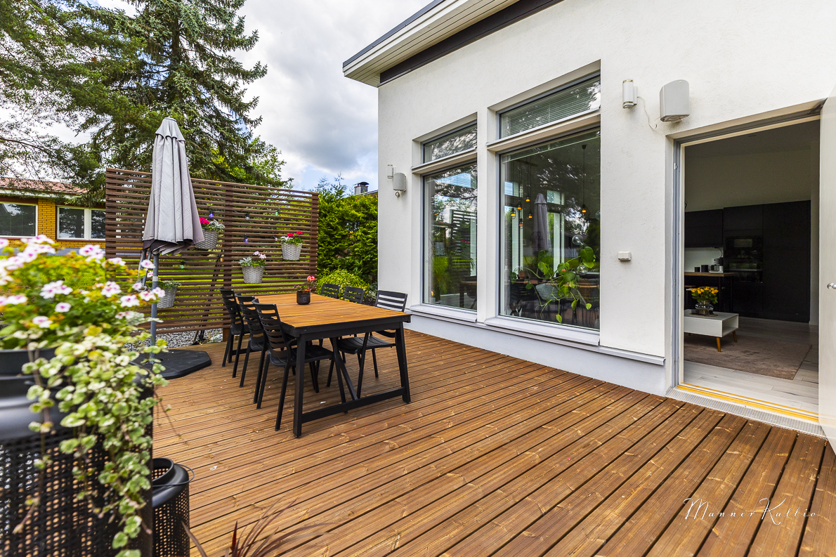 Lämmitys hoituu energiatehokkaasti maalämmöllä, ja kesähelteillä asumismukavuuden takaa viilentävä maaviileä. Säilytystilaa löytyy runsaasti, ja arkea helpottavat sekä lämmin ulkovarasto että käytännöllinen kodinhoitohuone, josta on käynti suoraan ulos. Lisäksi käytössäsi on autokatos yhdelle autolle sekä toinen pihapaikka. Etelän puoleinen, suuri terassi on täydellinen paikka rentoutumiseen – varustettu tyylikkäällä Drop Design Pool -ulkoporealtaalla. Piha-alue on suojaisa ja viimeistelty, joten koti jatkuu saumattomasti ulkotiloihin.