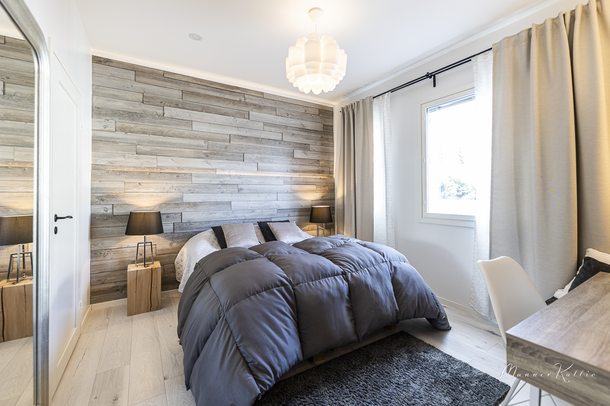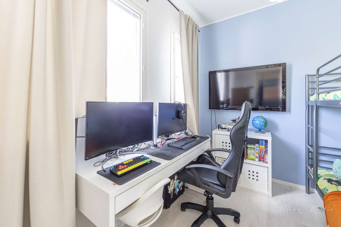 | Makuuhuoneen kuvaus | Lukumäärä: 3, seinät (maali ja tapetti), lattiat (laminaatti) |