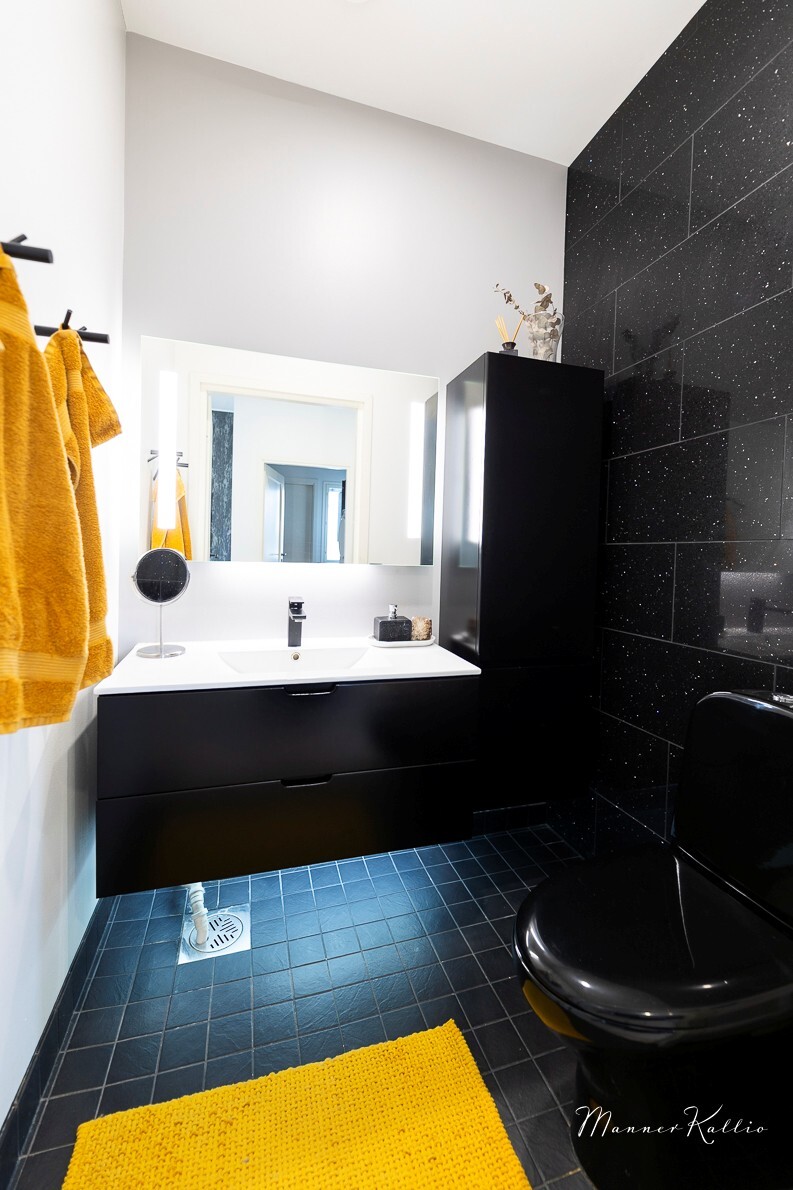 | Kylpyhuoneen kuvaus | Suihku (2 kpl, kattosuihkuja), seinät (kaakeli), lattiat (laatta) |