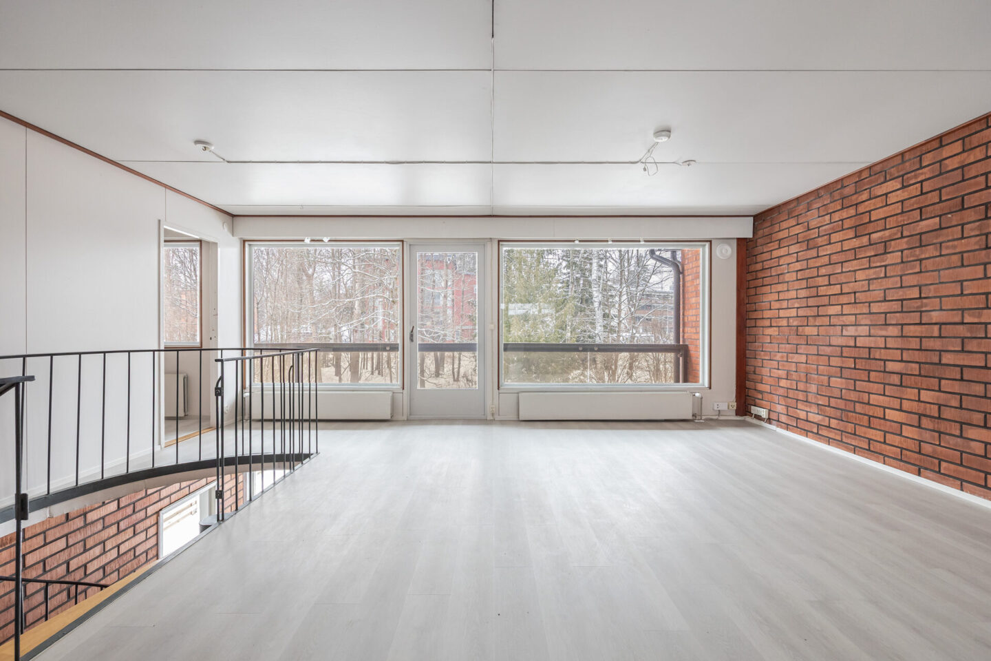| Seinämateriaalien kuvaus | Maali: keittiö, alakerran makuuhuone Maali/tapetti: eteinen, olohuone, yläkerran makuuhuoneet ja alakerran aula Tiili, osittain: olohuone, eteinen, yläkerran makuuhuoneet ja alakerran aula Kaakeli: wc, kylpyhuone ja pesutilat Paneeli: sauna Betoni: harrastetila |