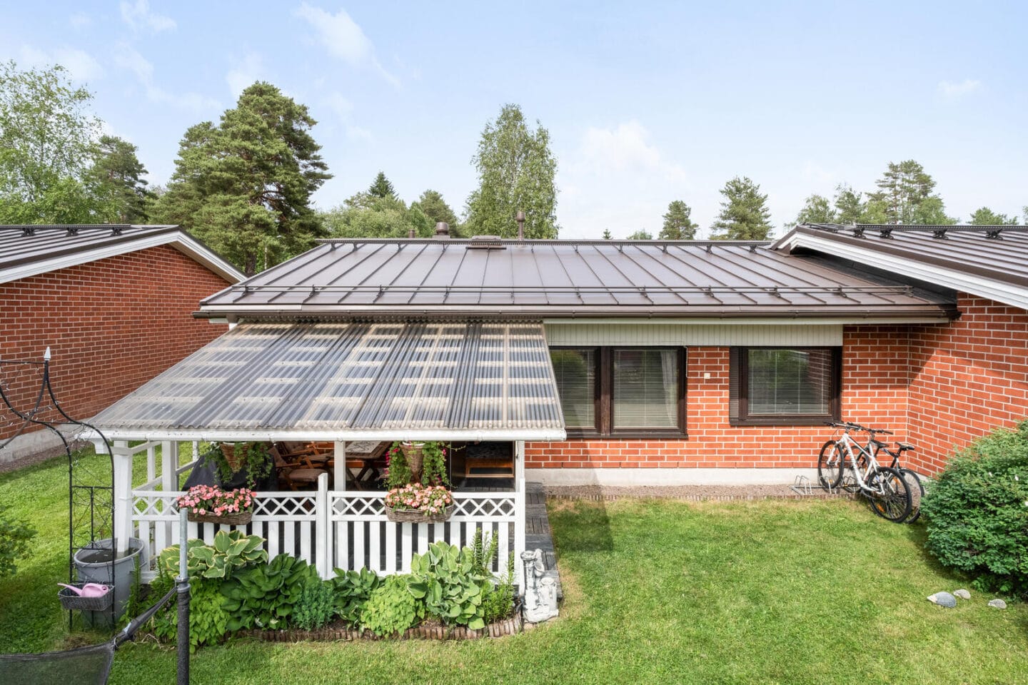 Siisti 4:n huoneen yksitasoinen päätyasunto rauhallisella ja lapsiystävällisellä alueella. Asunto on kauttaaltaan remontoitu ja taloyhtiön katto uusittu 2023. Isohkolla länteen avautuvalla takapihalla ja osittain katetulla terassilla nautit kesäpäivistä. Asunnossa on runsaasti säilytystilaa ja ulkovarasto aivan asunnon edessä.