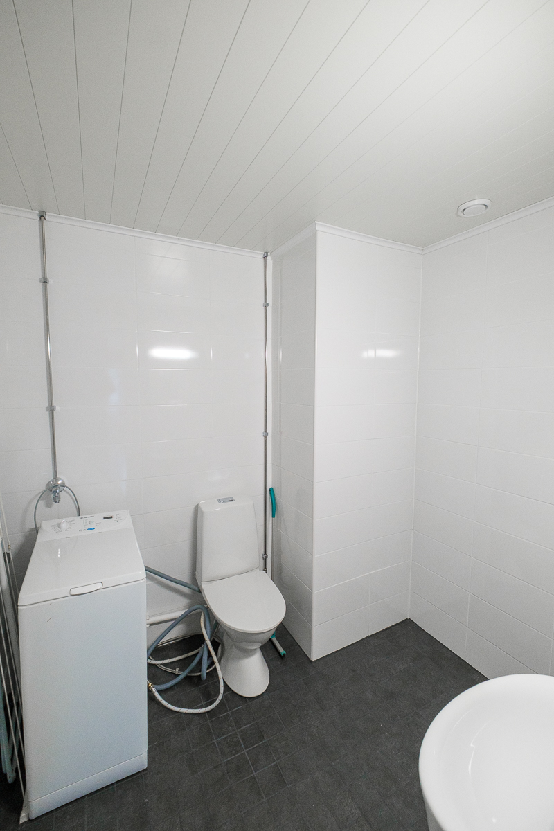 | Kylpyhuoneen kuvaus | WC-istuin, suihku, pesukoneliitäntä, peilikaappi ja pesuallas, seinät (kaakeli), lattiat (laatta) |