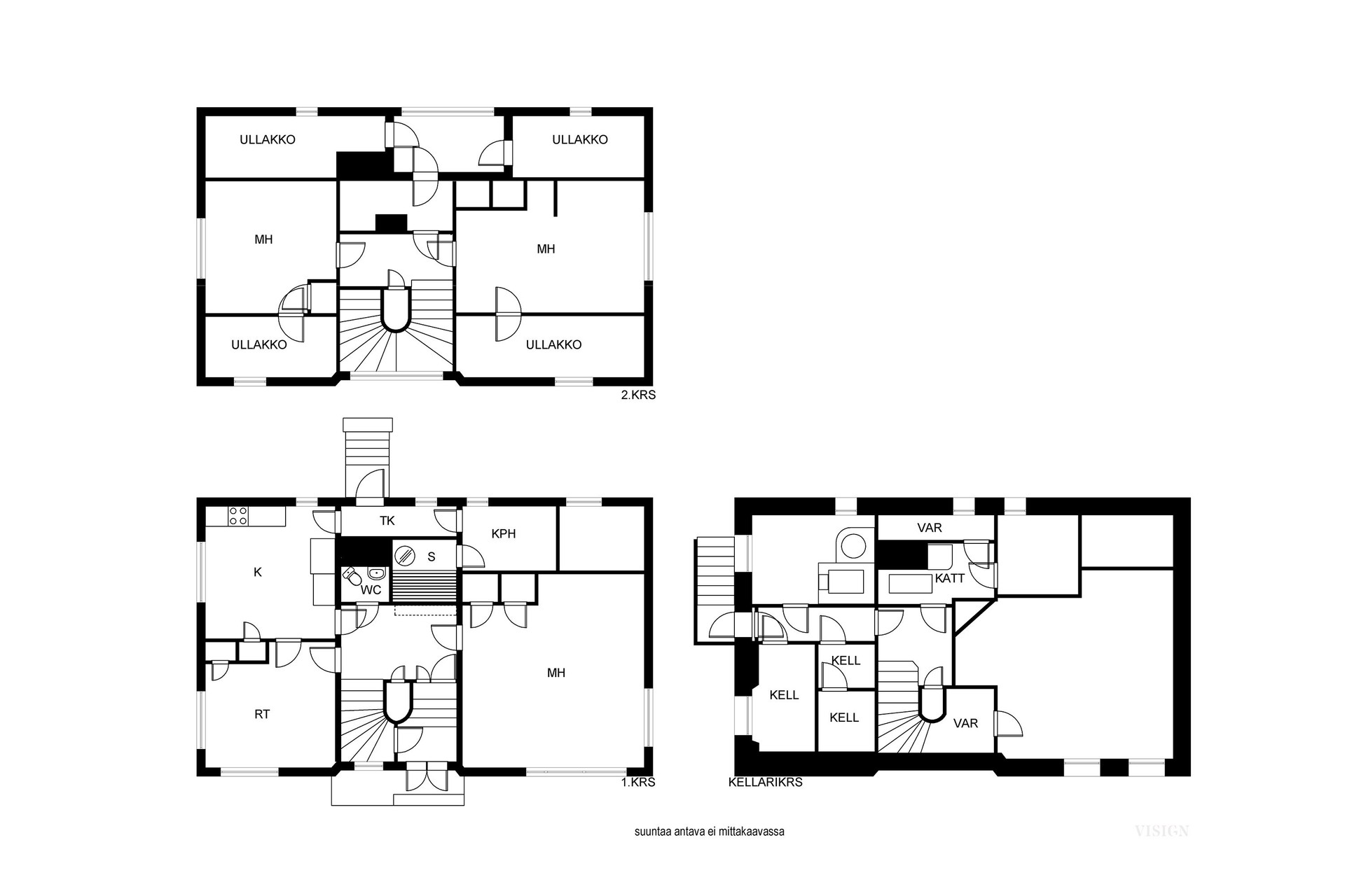 Ei tarkistusmitattu. Pinta-alat saattavat tämän ikäisissä kohteissa (rekisteröity ennen 01.01.1992) poiketa olennaisestikin asuinrakennusten nykyisten mittaustapojen ja standardien (SFS 5139) mukaan laskettavasta asuintilojen pinta-alasta. Pinta-ala voi siis olla edellä mainittua pienempi tai suurempi.