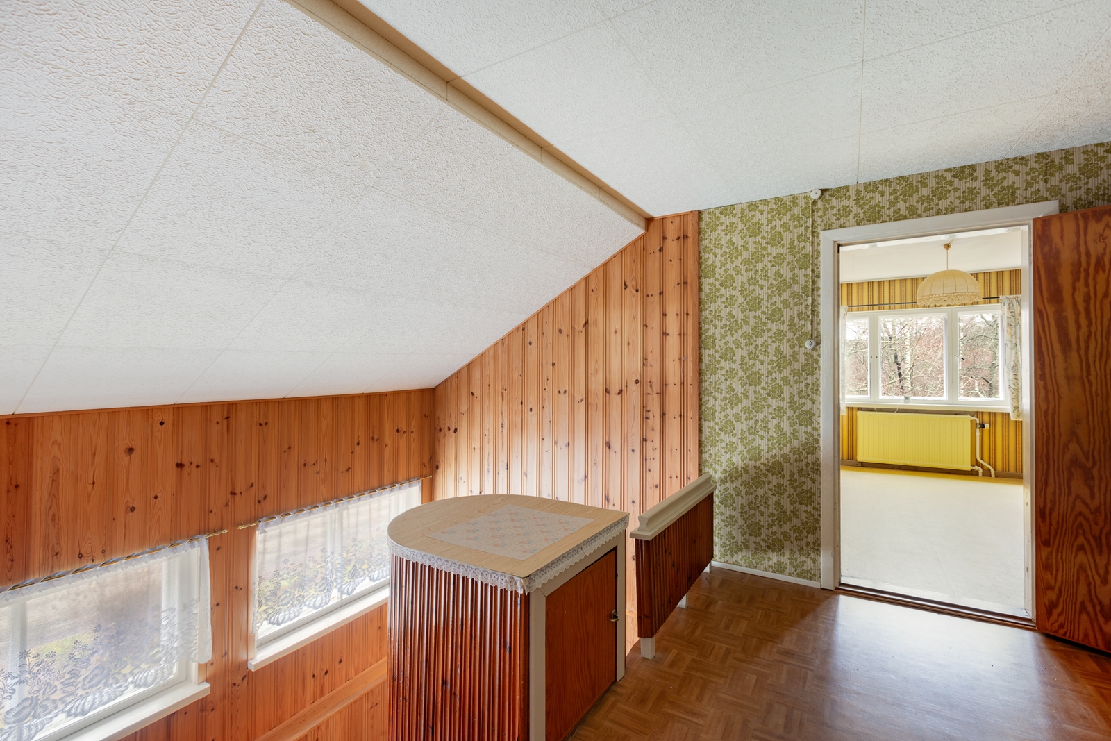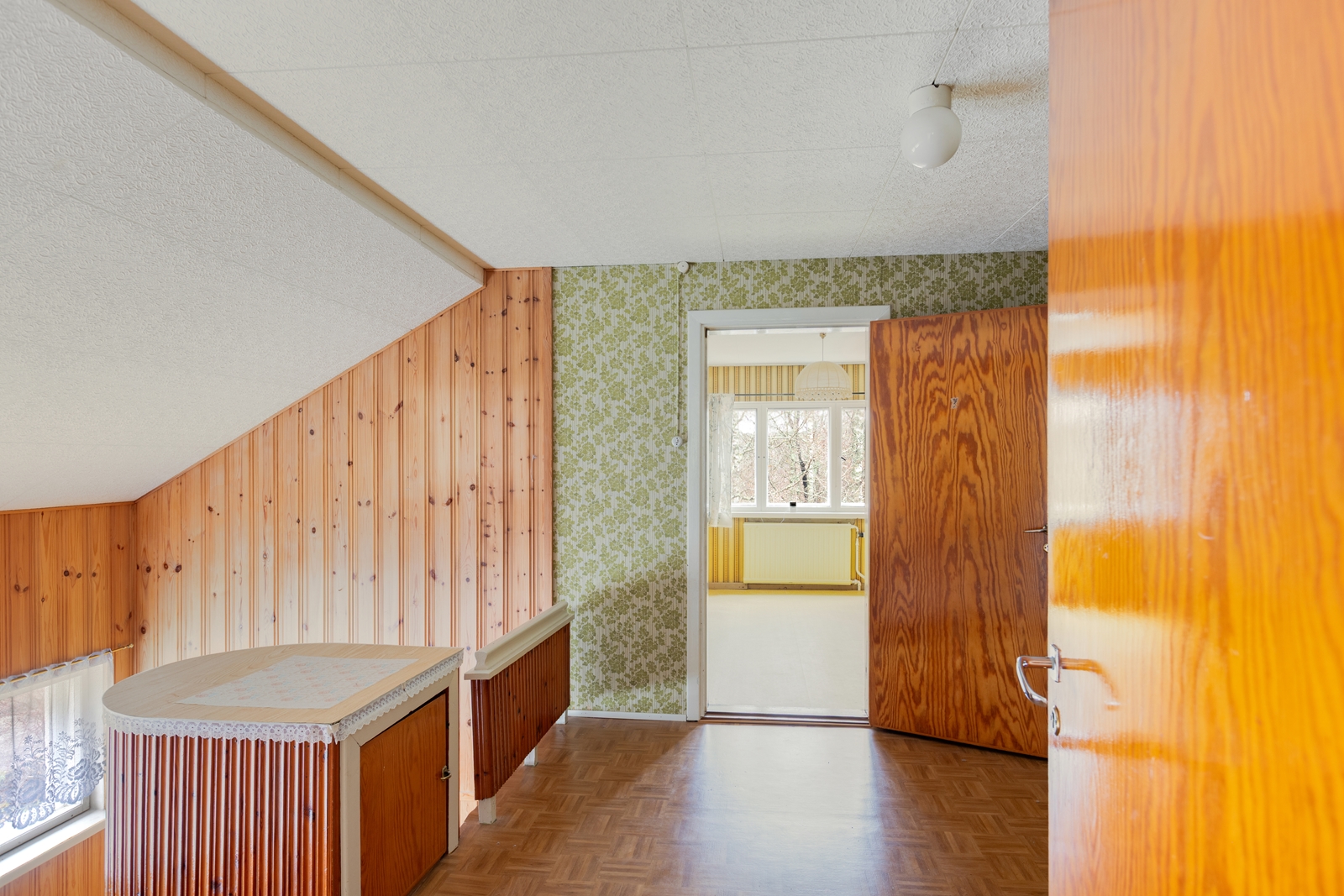 Seinät (tapetti), lattiat (parketti) |