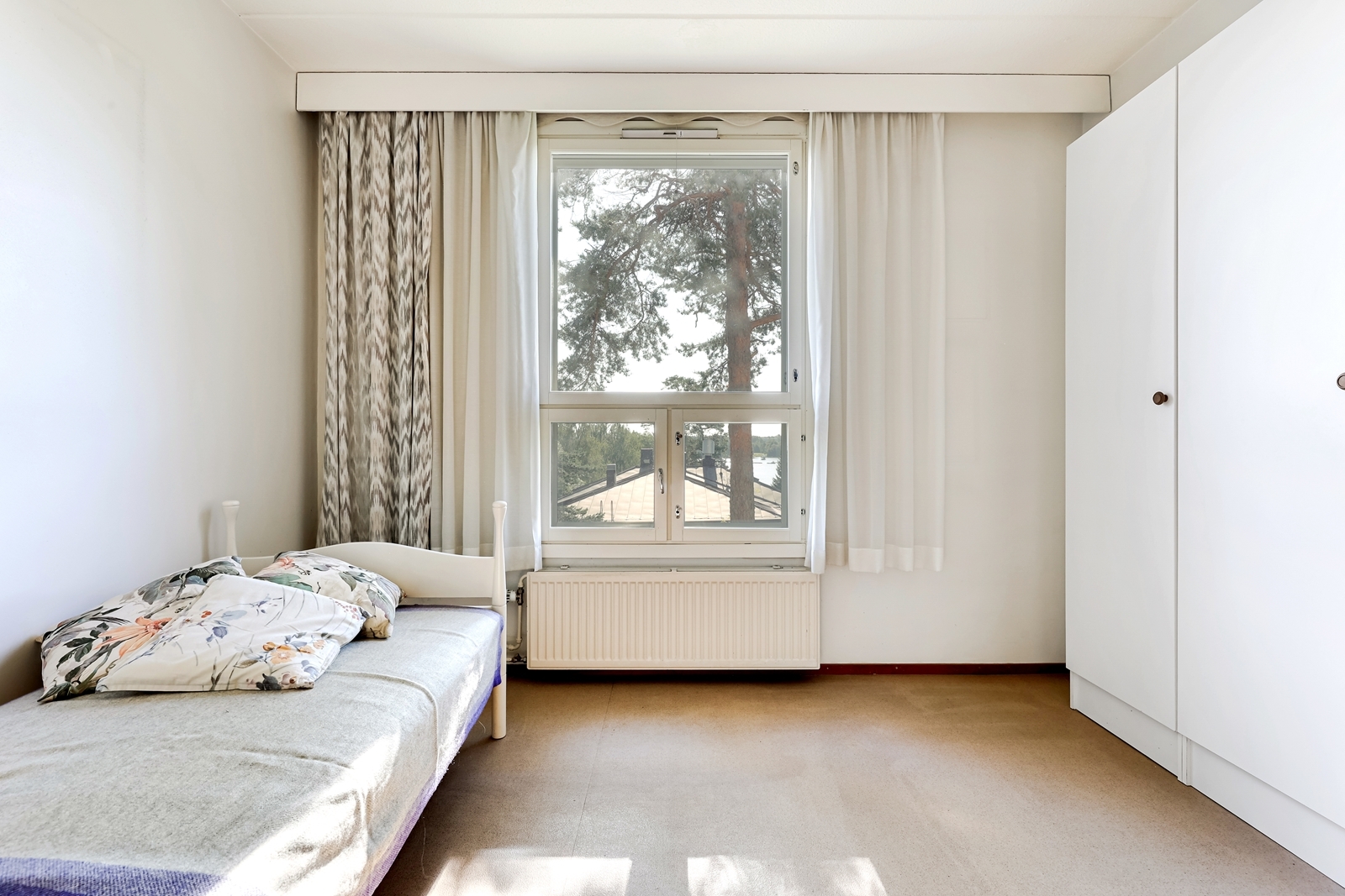 Tule nauttimaan ensilöylyistä juuri remontoidussa saunassa ja pesuille uusittuun kylpyhuoneeseen. Valoisa, heti vapaa pienkerrostalon päätyhuoneisto. Rauhallinen sijainti päättyvän kadun perällä. Ensimmäisessä kerroksessa todella iso olohuone, josta pääset ihailemaan lasitetulle parvekkeelle avaria, merellisiä näkymiä. Kahdesta makuuhuoneesta on myös samat mainiot näkymät. On myös mahdollisuus kolmanteen makuuhuoneeseen (katkoviivoin pohjakuvassa). Lisäksi tässä kerroksessa on erillinen keittiö ja wc.
