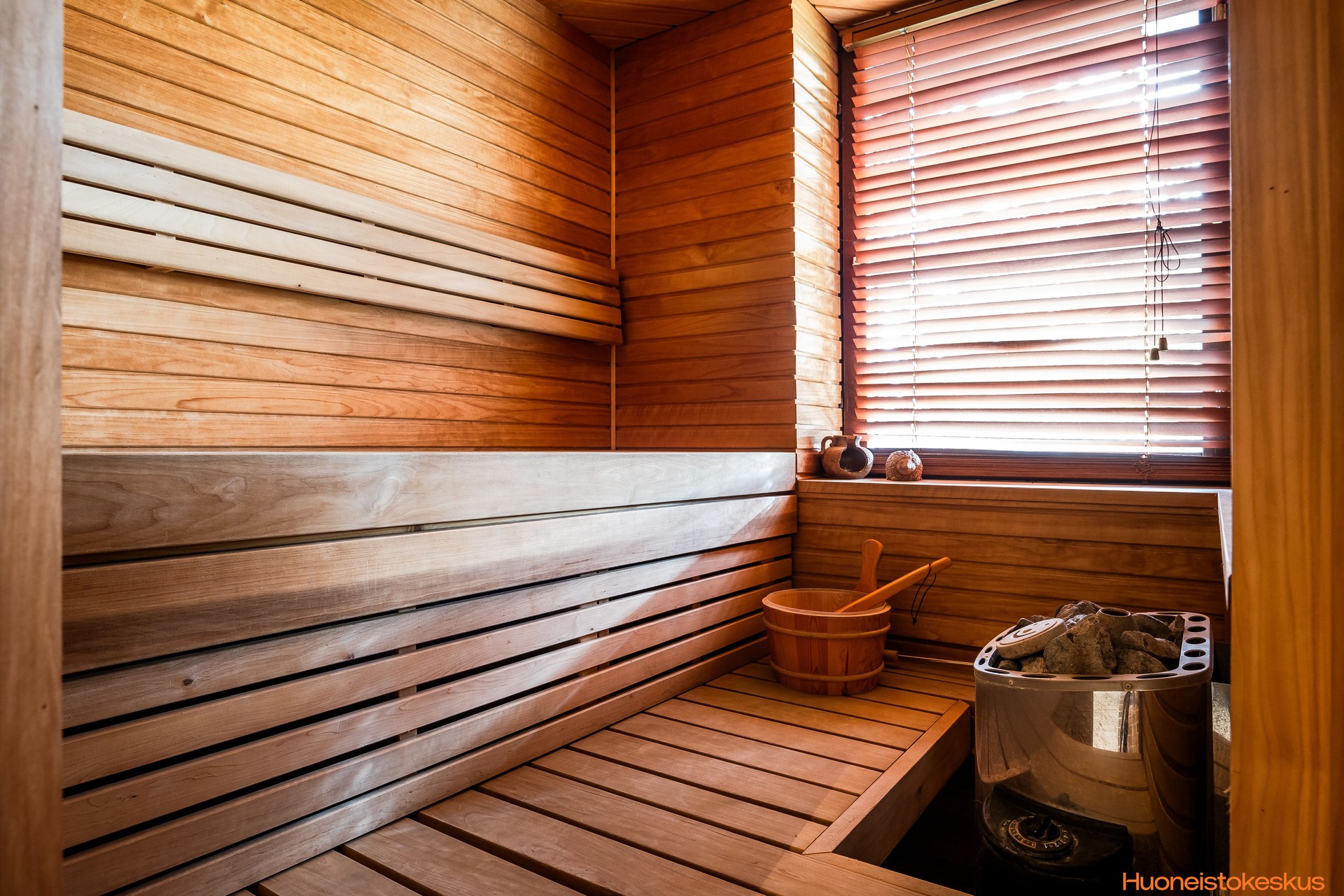 | Saunan kuvaus | Seinät (paneeli), lattiat (laatta), Sähkökiuas, ikkuna |