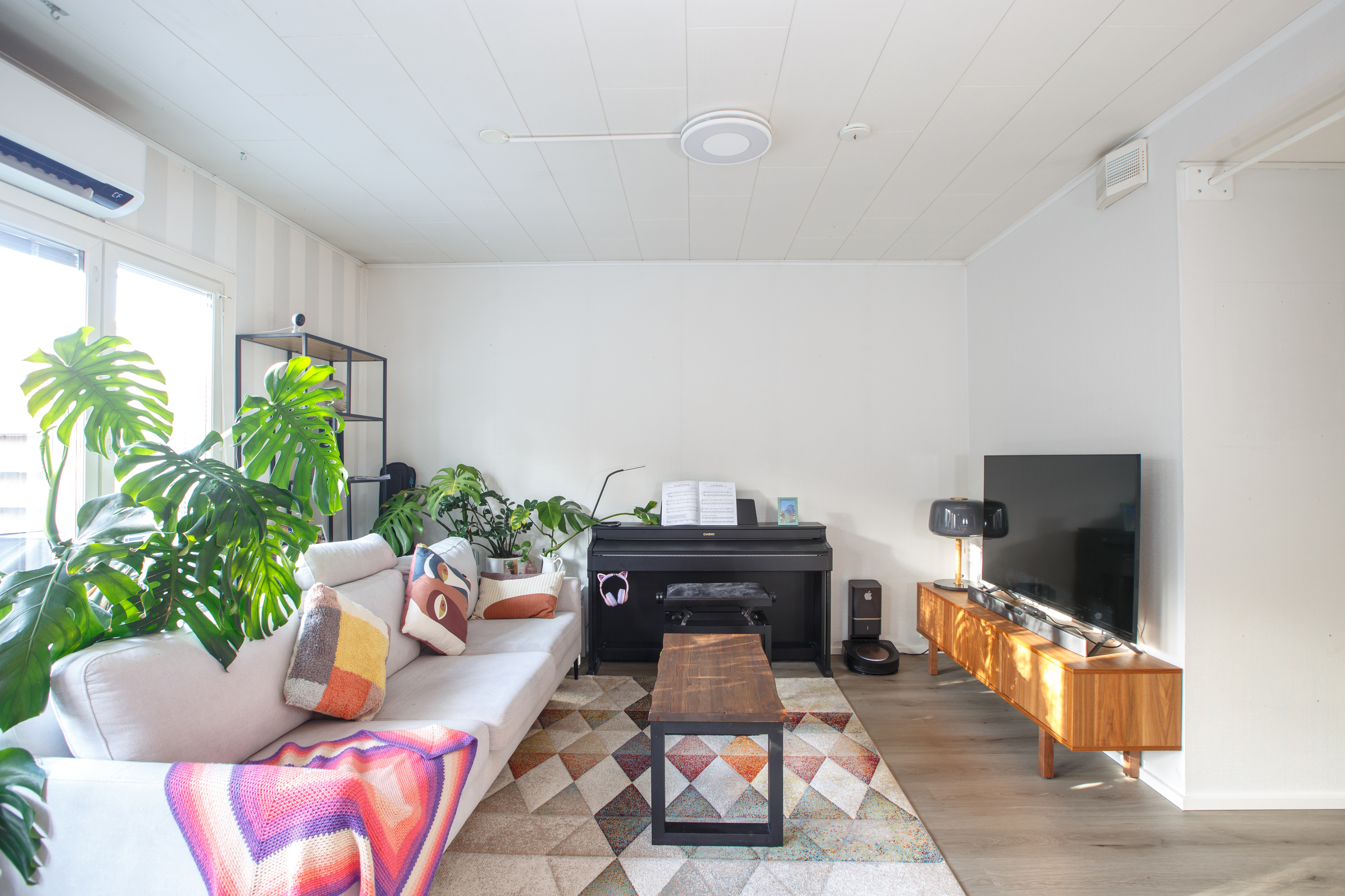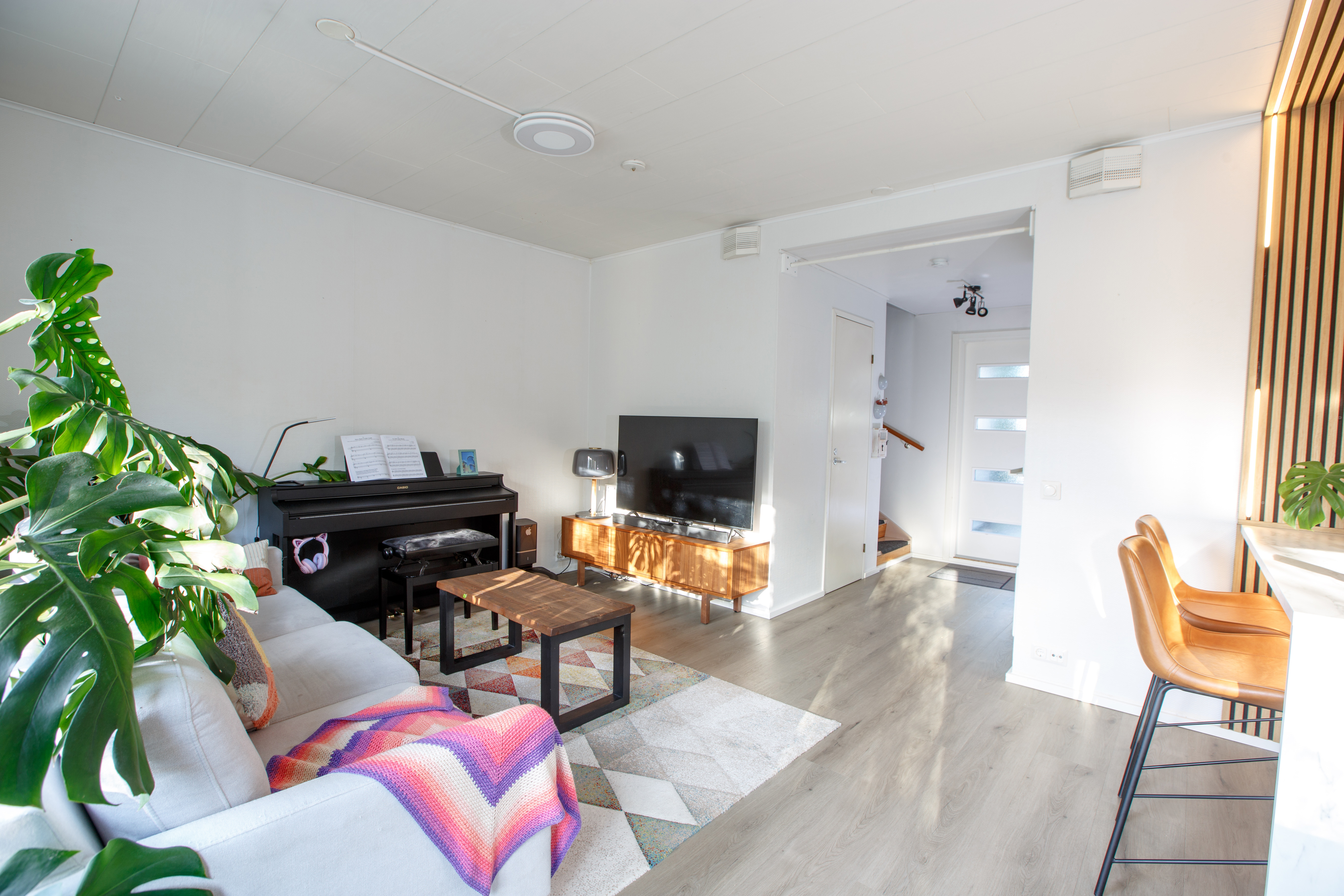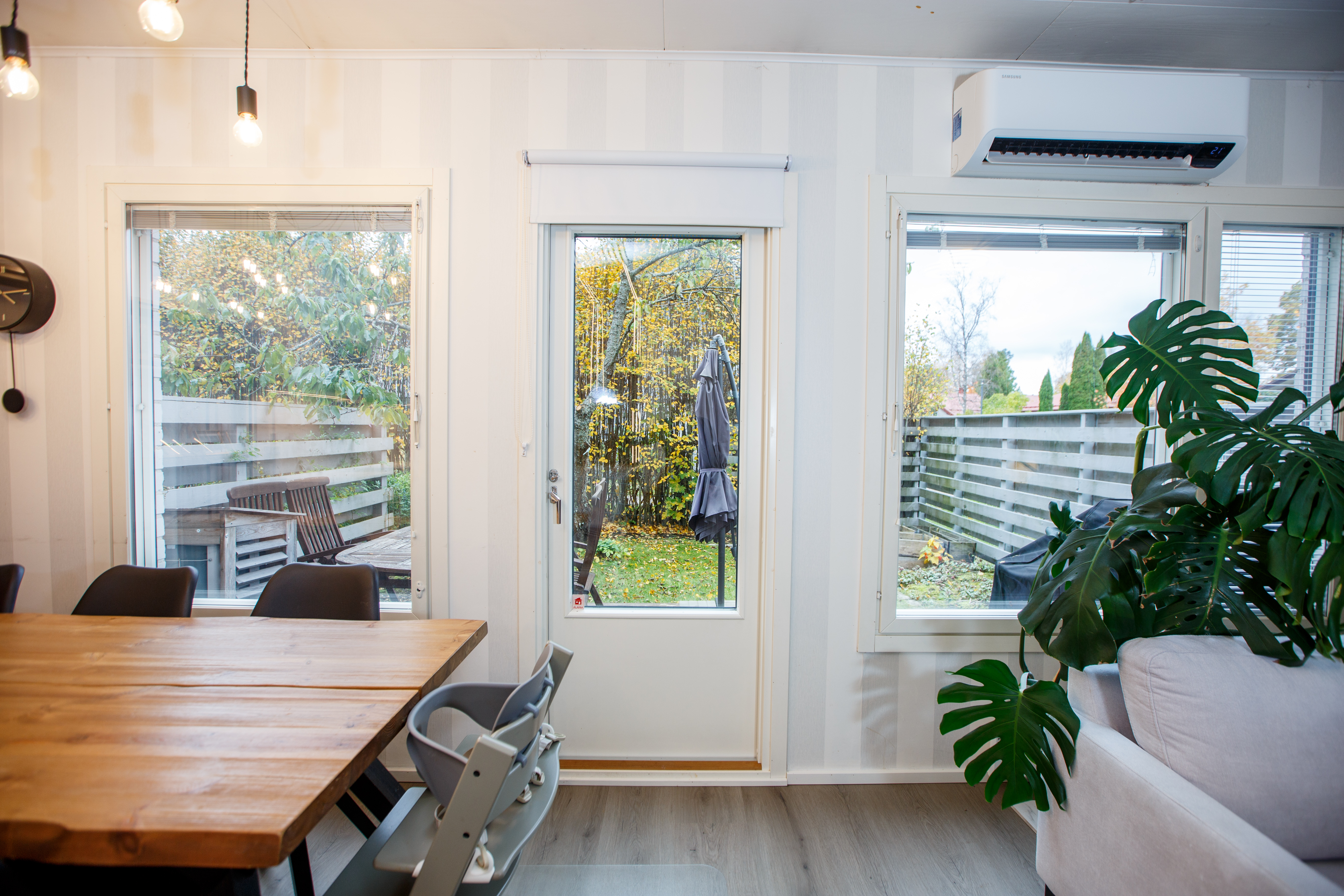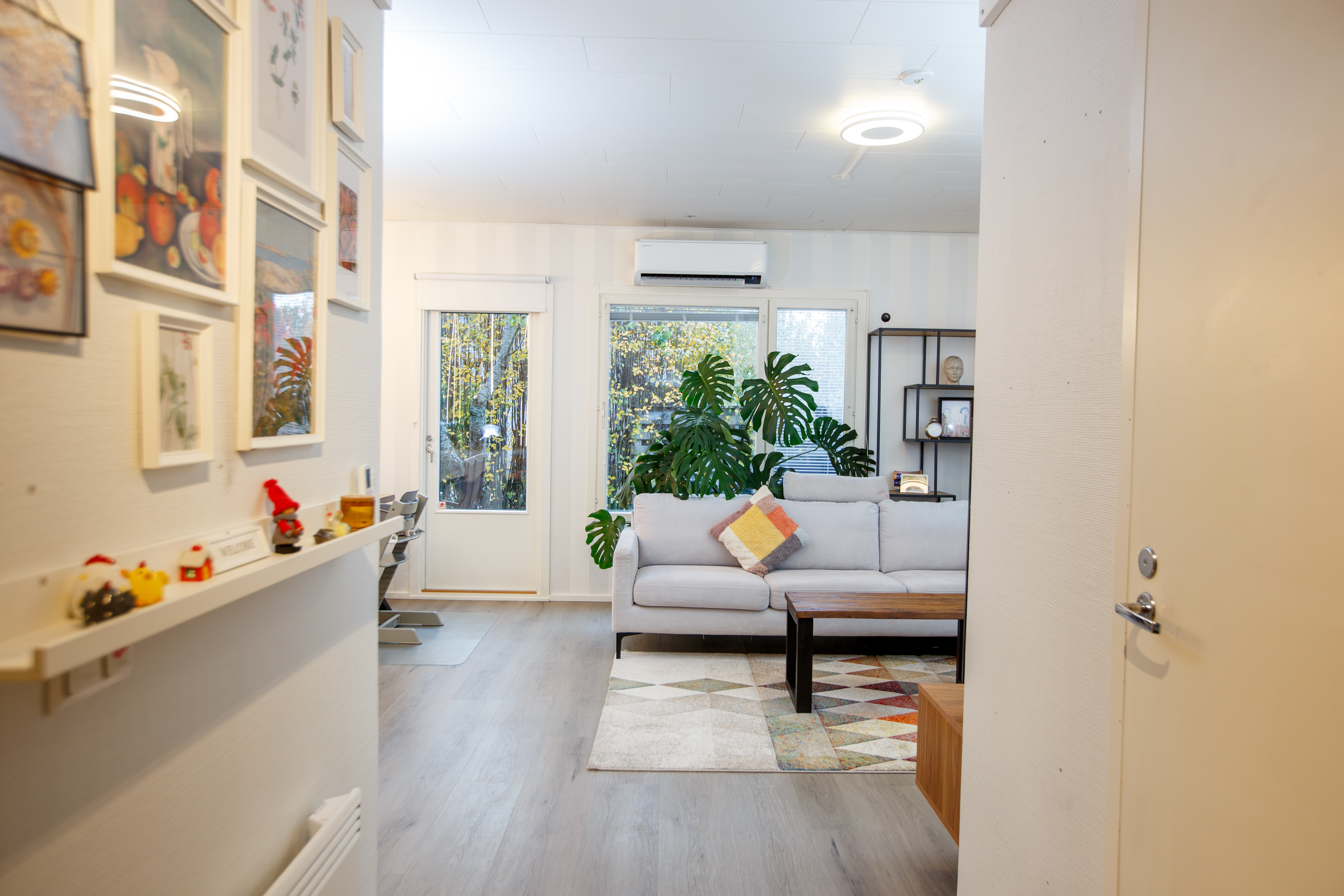 | Olohuoneen kuvaus | Seinät (maali), lattiat (vinyyli), Ilmalämpöpumppu, käynti takapihalle |