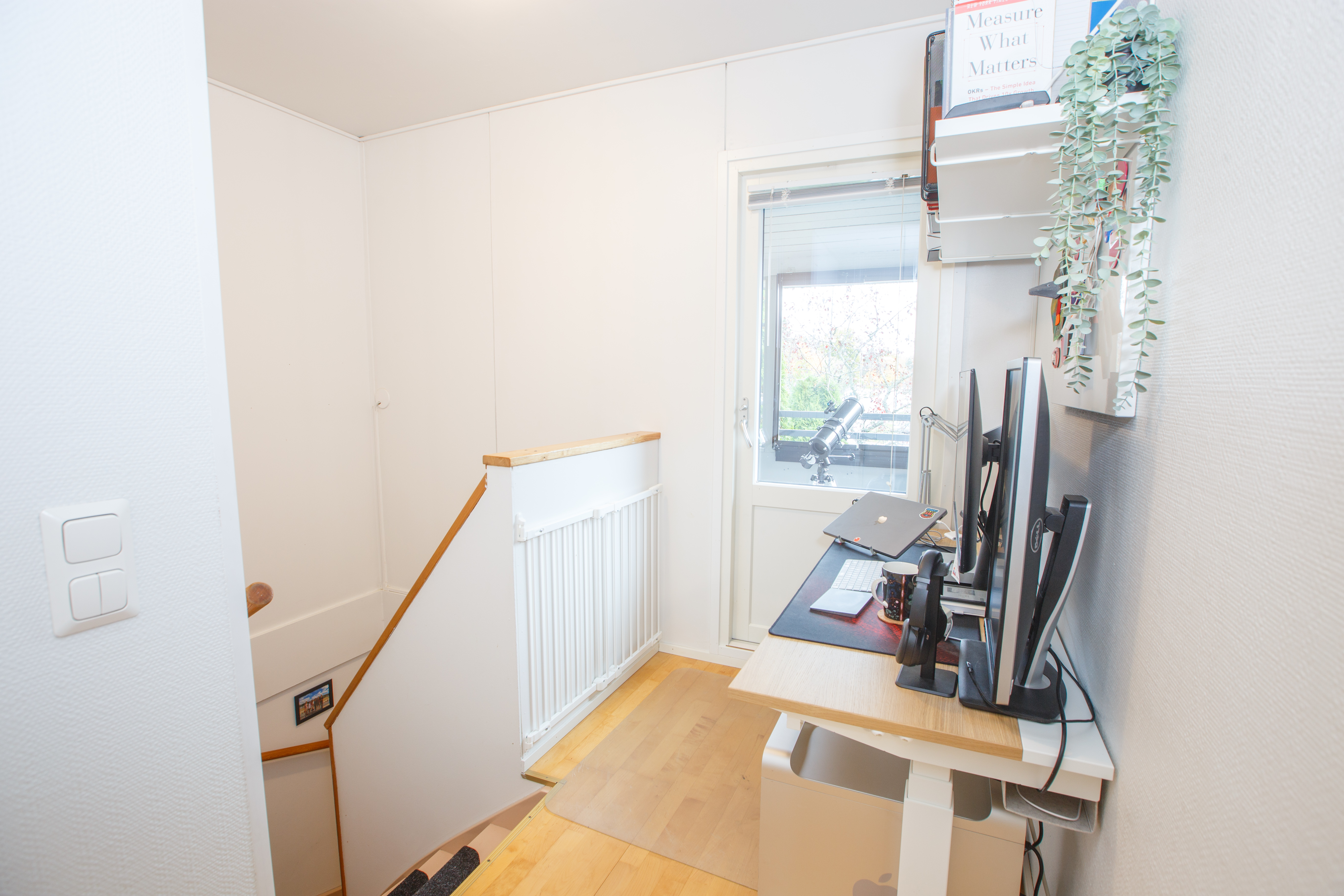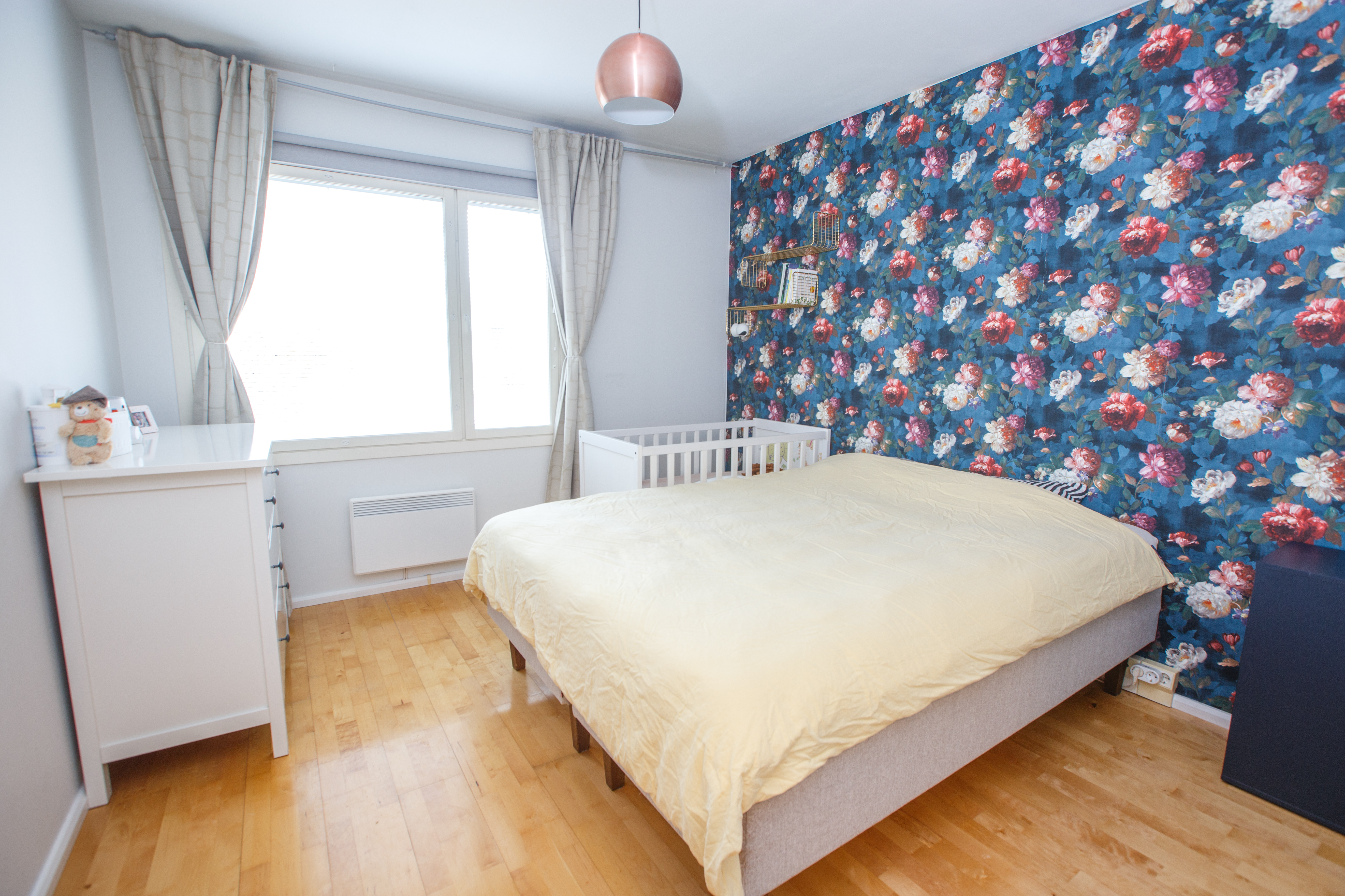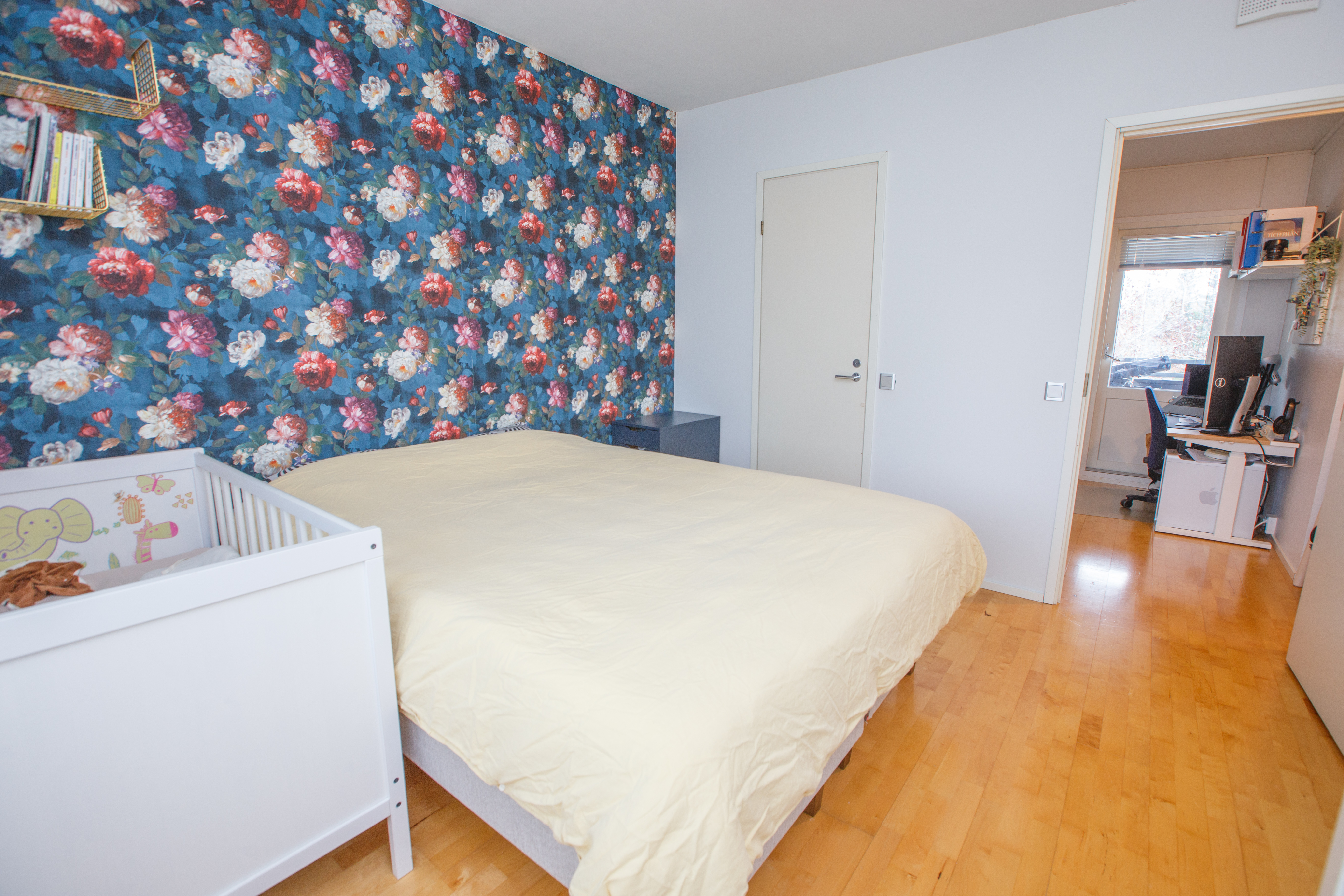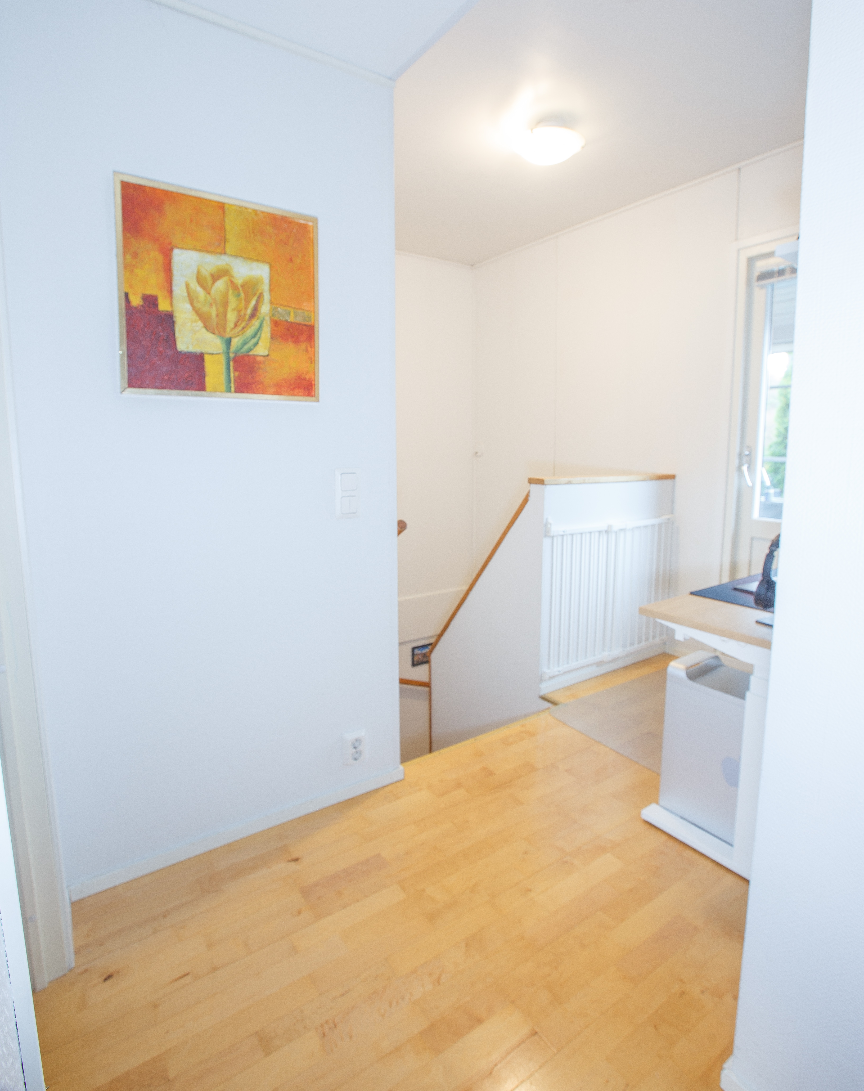 Yläkerrassa on vuonna 2019 remontoidut ikkunalliset kylpyhuone ja sauna. Lisäksi kaksi tilavaa makuuhuonetta, joista yhdessä on kaapistot ja toisessa vaatekomero. Yläkerran aulaan saa hyvin esimerkiksi työpisteen ja aulasta on pääsy parvekkeelle, jonne aamuaurinko paistaa.