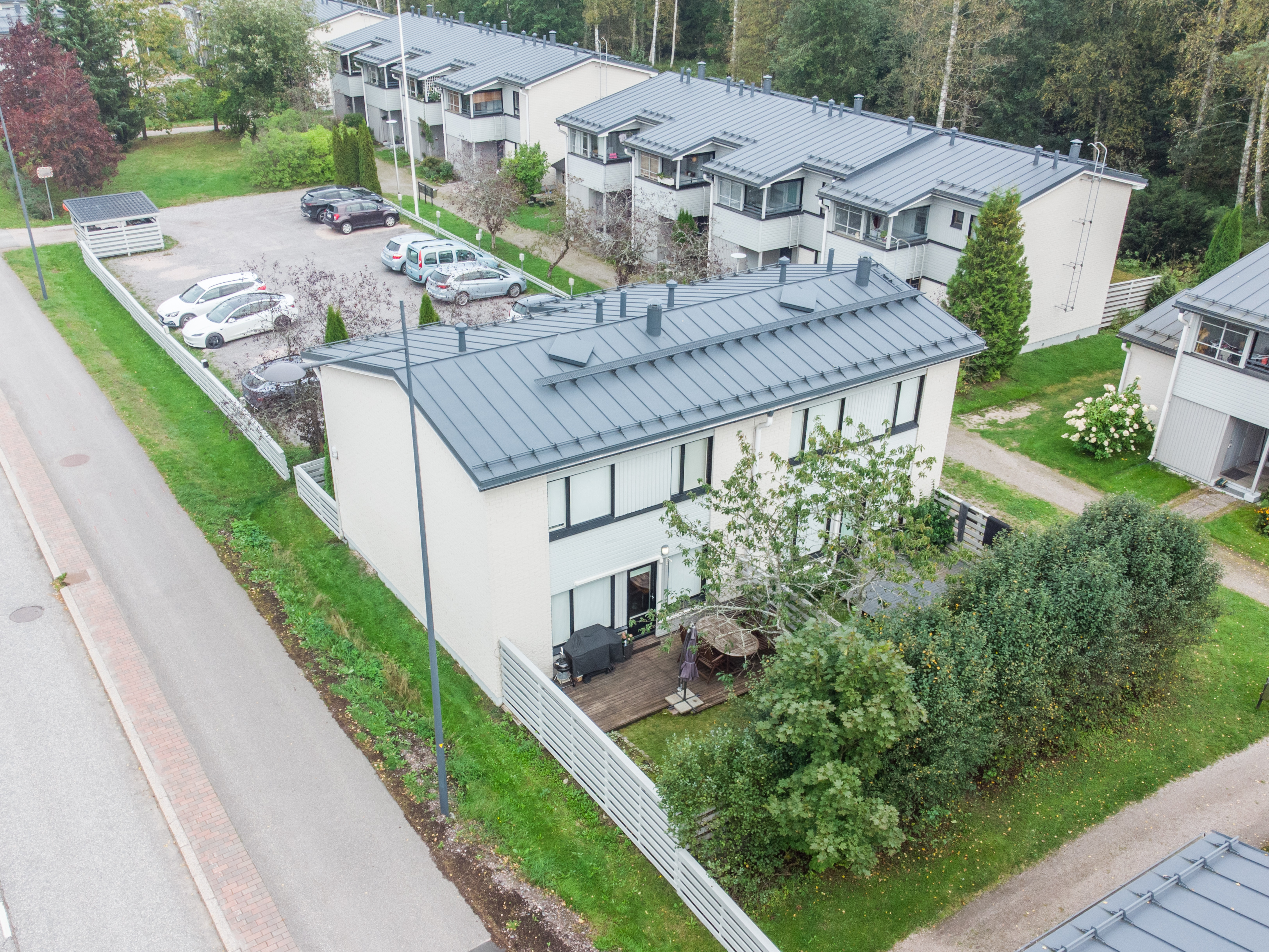 | Tehdyt remontit | 1997 Vesikate ja IV-koneet uusittu. 2005 Yläkerran ikkunoiden uusinta. 2011 Alakerran ikkunoiden ja takaoven uusinta. 2011 Ylä- ja alapohjan eristyksen ja tuuletuksen parannus. 2012 Lumiesteiden kiinnitysten tarkastus/uusinta julkisivun puolella. 2013 Tonttiviemärin kuvaus ja huuhtelu. 2014 Julkisivuhanke. 2014 Asuntojen ovien uusiminen. 2014 Antennikeskusten ajanmukaistaminen. 2015 Huoneistojen ilmanvaihtojärjestelmän nuohous- ja säätötyö. 2015 Pysäköintialueiden aitojen sekä leikkimökkien kunnostus/maalaus. 2015 Pihavalaisimien uusiminen. 2015 Antennien uusiminen. 2015 Tonttiviemärin korjaus. 2015 Yläpohjan tuuletusviemäröintien kannakointien korjaus. 2017 Kiinteistön vesikattojen korjaustyöt/hankesuunnitelma ja suunnitteluvaiheen käynnistyminen. 2018 Kiinteistön viemäreiden kannakointi alapohjarakenteissa. 12/2018-6/2019 Kattohankkeen urakointivaiheen läpivienti Kattotutka Oy:n toimesta. 2019 Kiinteistön antenniverkon kunnostus ja kuituyhteyden tuonti kiinteistöön sekä kiinteistöliittymän käyttöönotto. (DNA kaapelitelevisiota ja kiinteistöliittymää varten.) 2019-2021 Yhtiön kylpyhuonekunnostukset. Yksittäisiä asuinhuoneistojen KPH-kunnostuksia 2019-2020. 2020 Asuinhuoneistojen 1, 2, 5, 6, 7, 8, 11, 14, 15, 16, 17, 18, 19, 21, 22, 26, 27, 28, 32 ja 33 KPH-kunnostukset. 2021 Asuinhuoneistojen 4, 10, 20, 24, 25, 29, 30, 31 ja 34 KPH-kunnostukset. 2021 Lämmöntalteenotto laitteiden uusiminen. 2021 Yhtiön leikkialueiden kunnostustoimenpiteitä 2022 Piha-alueen puiden ja pensaiden hoitotoimenpiteitä 2022-2023 Kiinteistön ilmanvaihtojärjestelmän nuohous ja säätötyö 2023 Piha-alueella pintavesien ohjauksen parantamistoimenpiteitä 2024–2025 Tuulettuvien alapohjatilojen kartoitus ja pienkorjaukset (alapohjaluukkujen tiivistäminen sekä sähköpääkeskusten läpivientien palokatkojen toteutus) 2025 Kiinteistön sisäänkäyntiportaiden, sokkeleiden, parkkipaikan puuosien ja yksittäisten parvekkeiden kunnostushanke. 2025 Palovaroittimien asennus Lisäksi katso erillinen hallituksen kunnossapitotarveselvitys. |