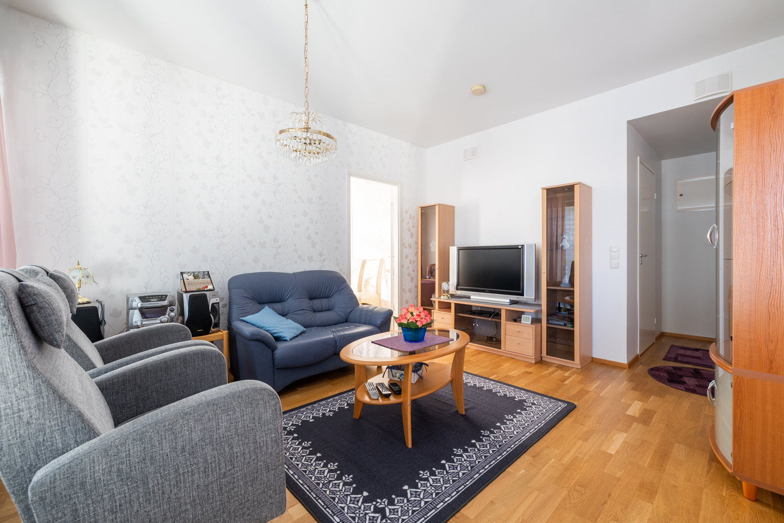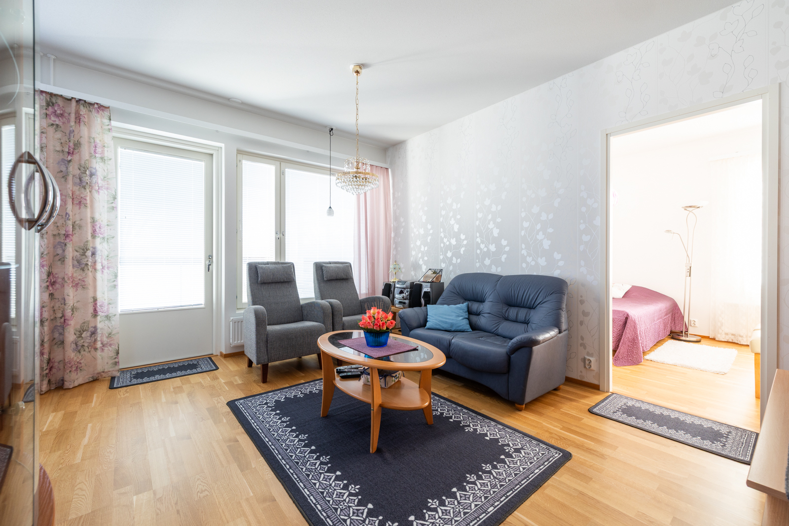 Seinät (tapetti ja maali), lattiat (parketti) |