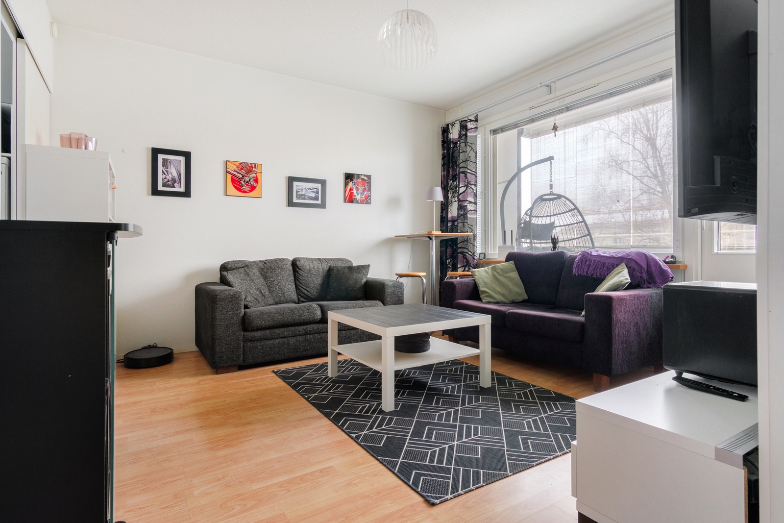 Kodin sydän on olohuone, josta on käynti länteen avautuvalle lasitetulle parvekkeelle. Parvekkeella voit nauttia ilta-auringosta ja rauhallisista hetkistä pitkälle syksyyn. Keittiö on kompakti ja käytännöllinen, keittiökaapit on uusittu 2025. Makuuhuone on tilava, ja siellä on riittävästi kaappitilaa.