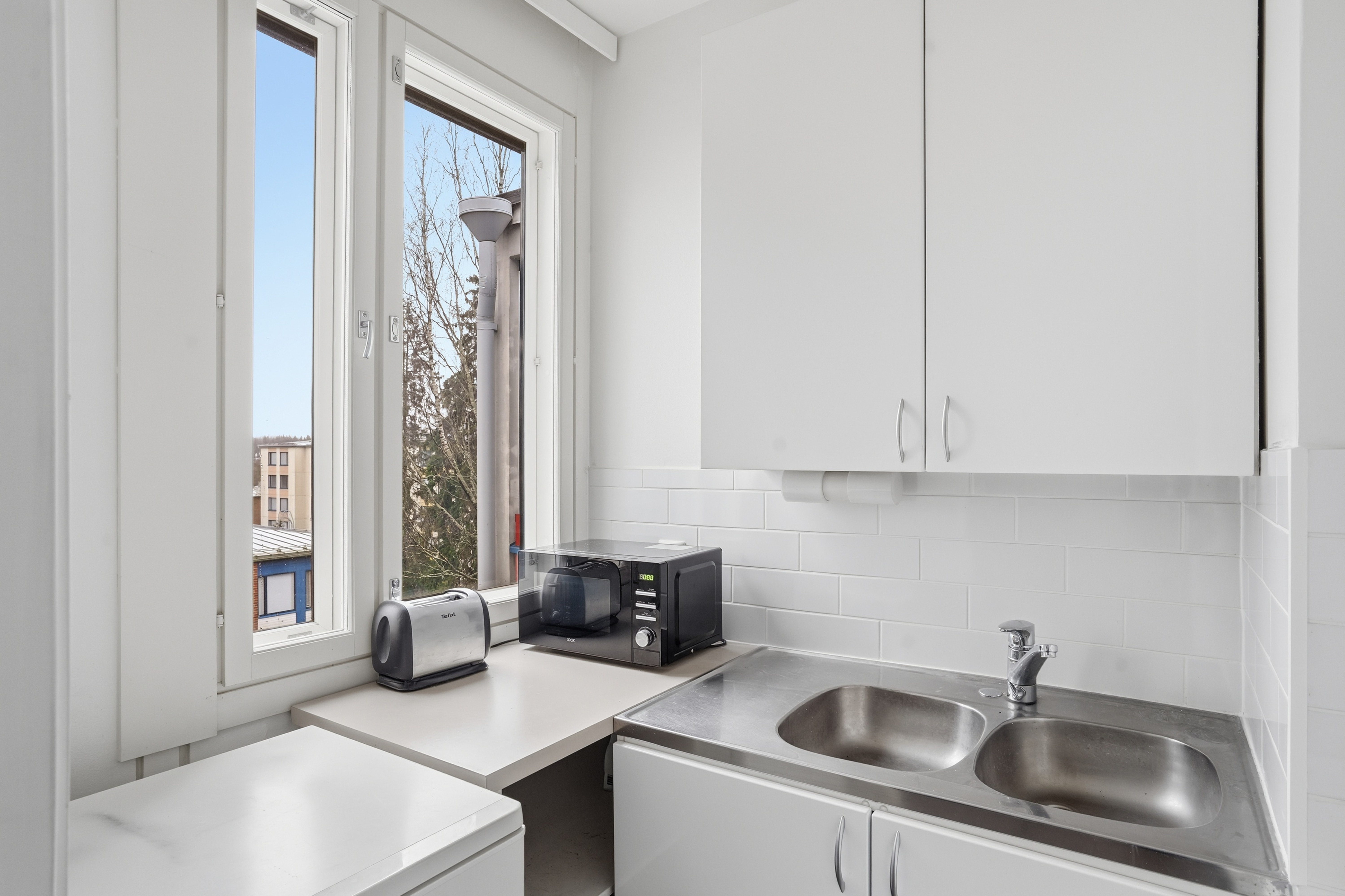 Tervetuloa tutustumaan tähän hyvin pidettyyn yksiöön, joka sijaitsee hissitalon ylimmässä kerroksessa. Vuonna 1971 valmistuneessa taloyhtiössä on tehty putkiremontti, joten asuminen on huoletonta vielä pitkään.